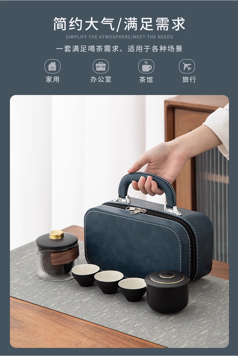 휴대용 야외 여행 차 세트 세트 간단한 오피스 버블 메이커 1 포트 3 컵 자동차 운반 용 보관 가방스토어 가기