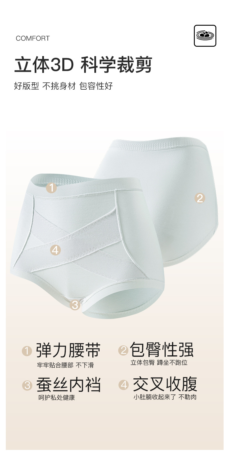 X 붕대 높은 허리 배꼽 바지 면화 숙녀 속옷 뽕나무 실크 통기성 항균 가랑이 여성 브리프 엉덩이 반바지스토어 가기