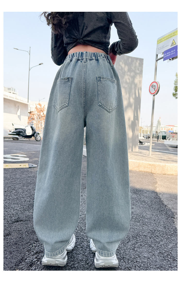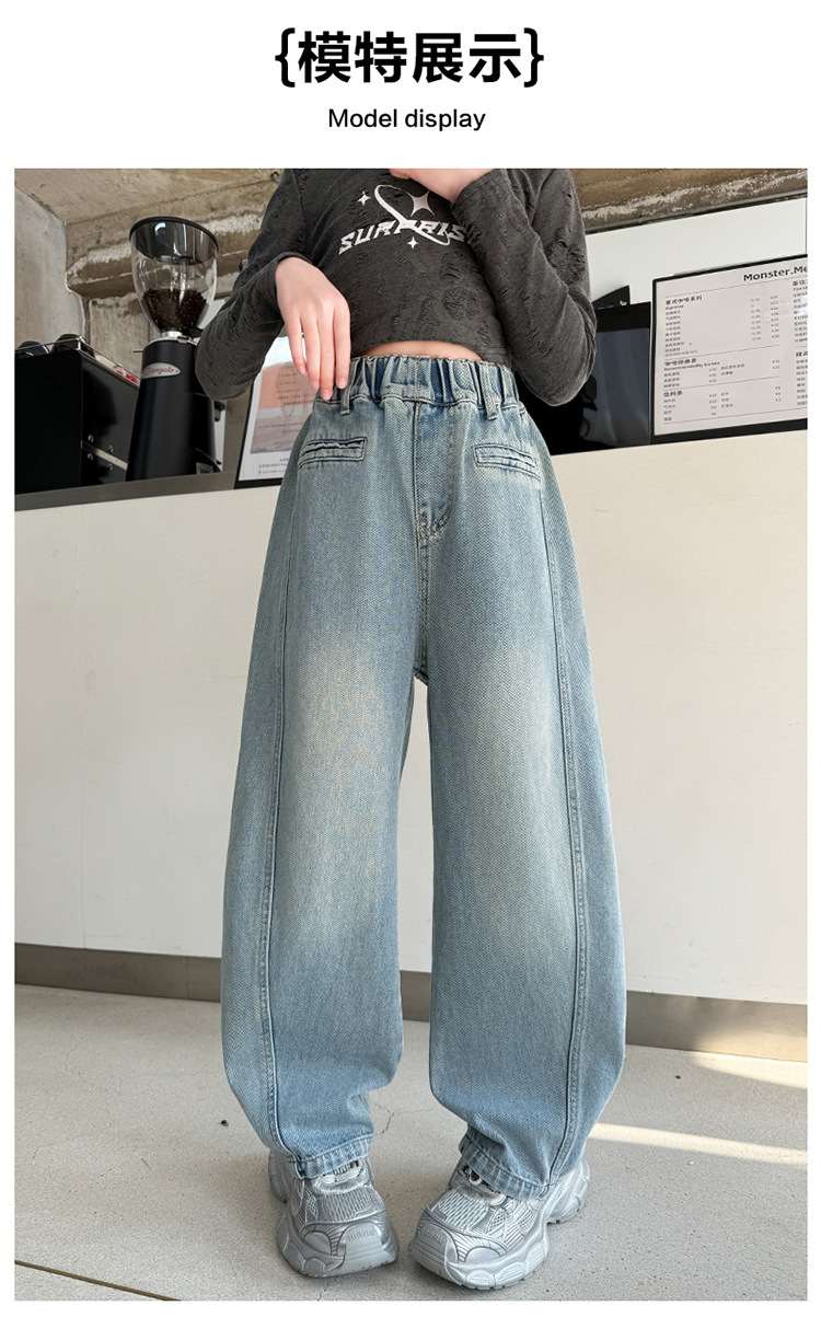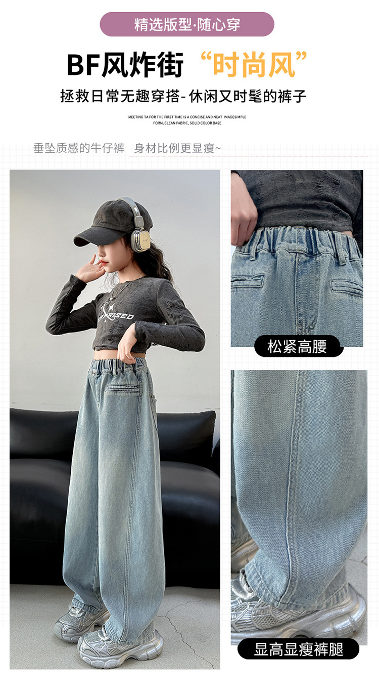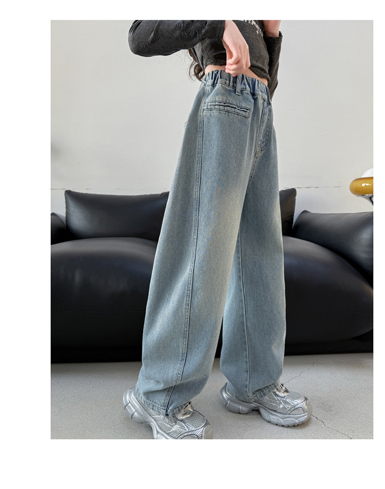 소녀 봄 스트레이트 다리 바지 봄과 가을 2025 새로운 도착 중다 어린이 서양식 캐주얼 청바지 학생 넓은 다리 바지스토어 가기
