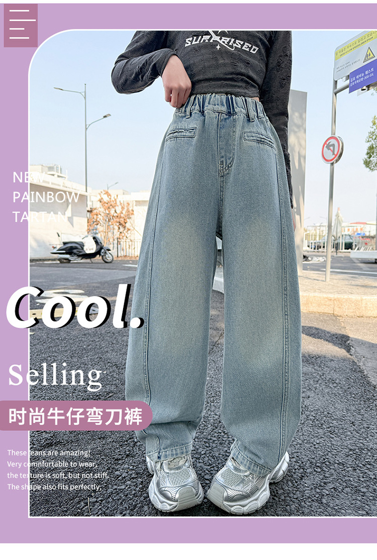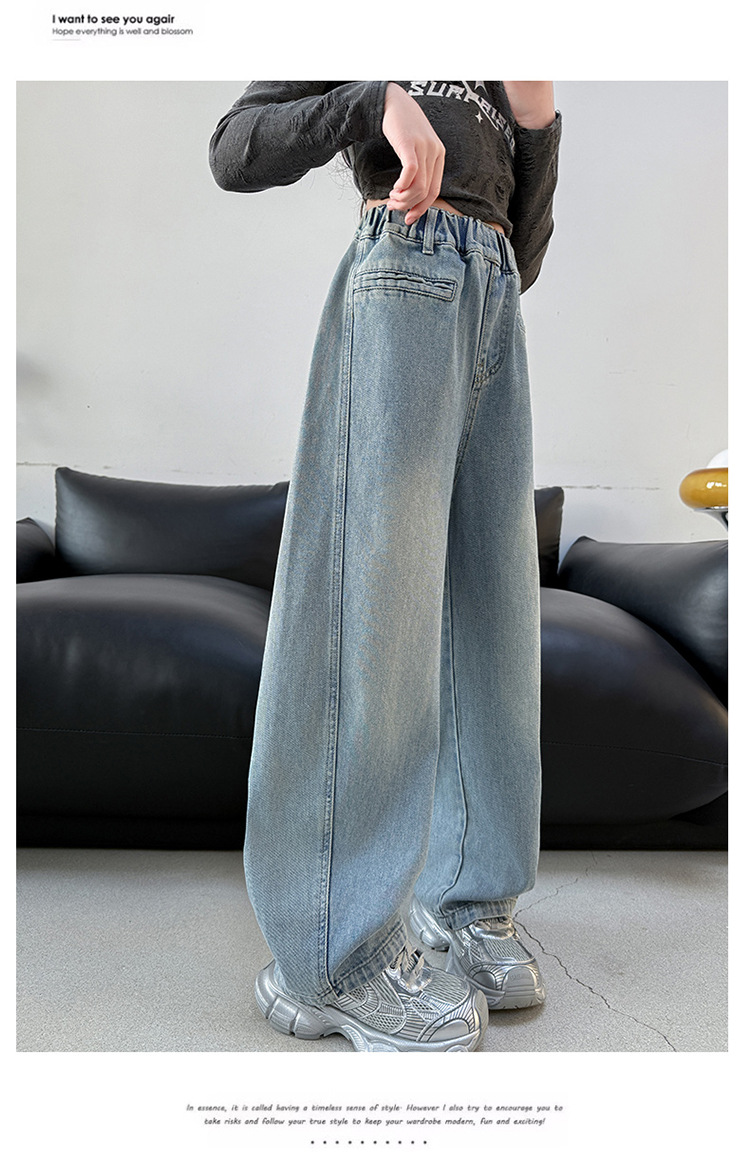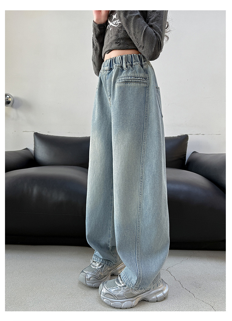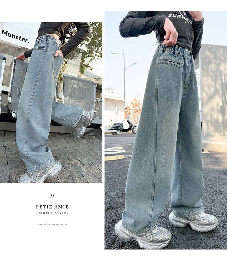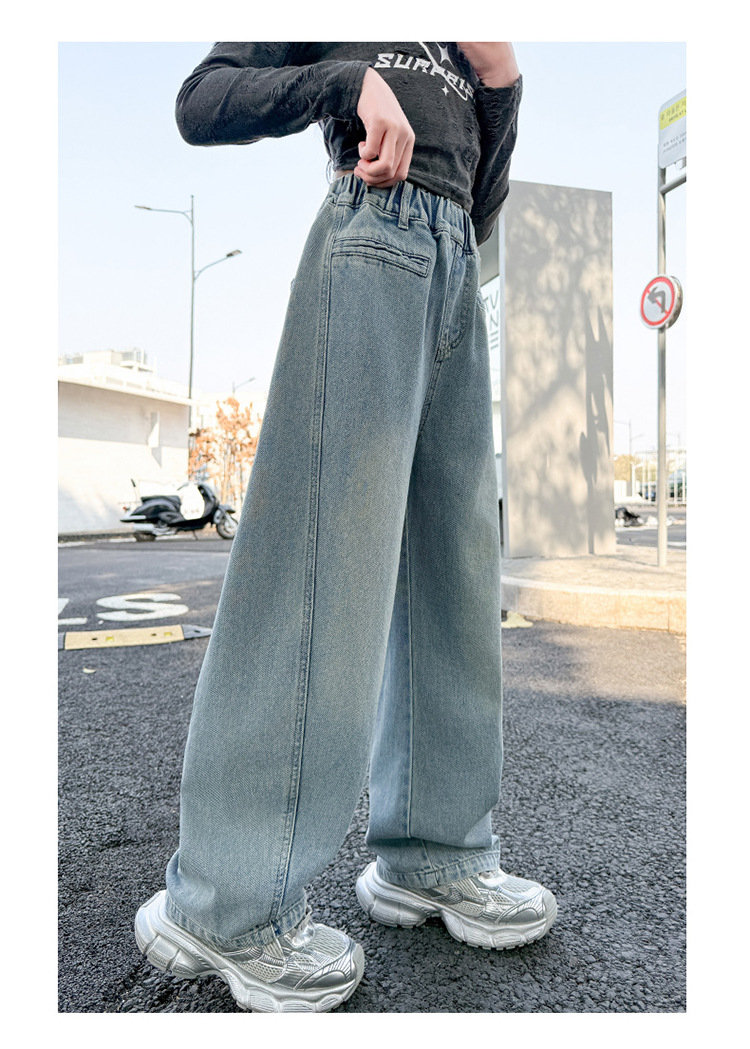 소녀 봄 스트레이트 다리 바지 봄과 가을 2025 새로운 도착 중다 어린이 서양식 캐주얼 청바지 학생 넓은 다리 바지스토어 가기