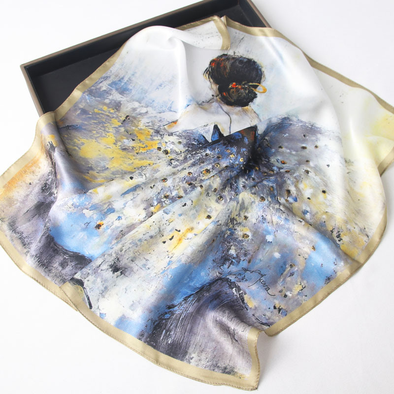 53 봄과 가을 항주 실크 작은 광장 스카프 여성 실크 스카프 도매 뽕나무 실크 고급 스카프 원래 디자인 고급