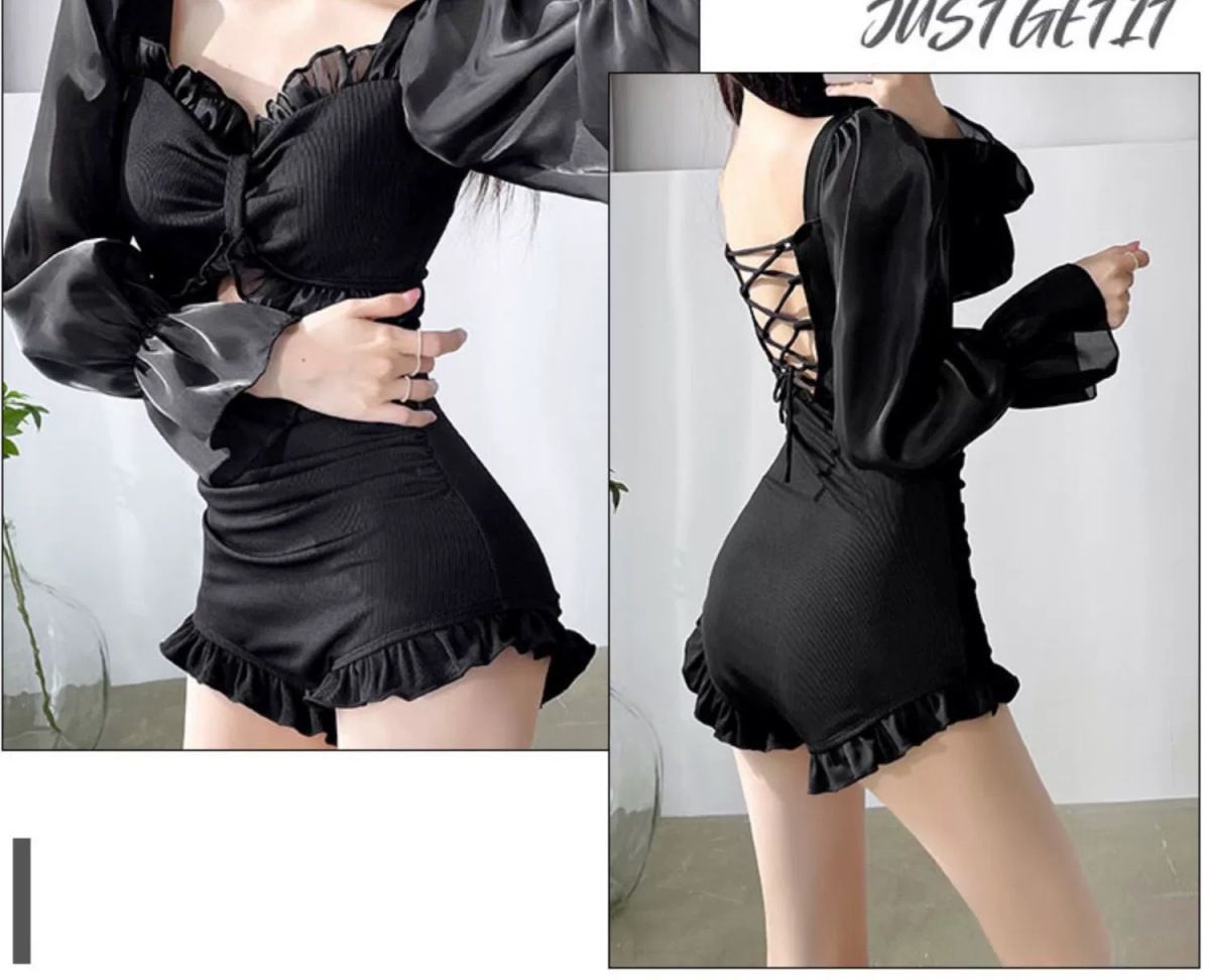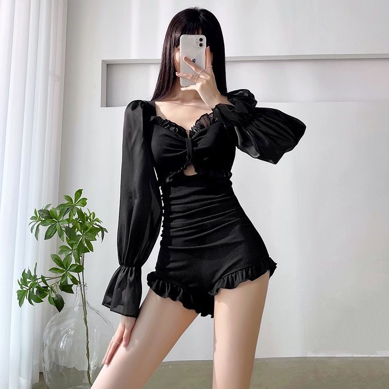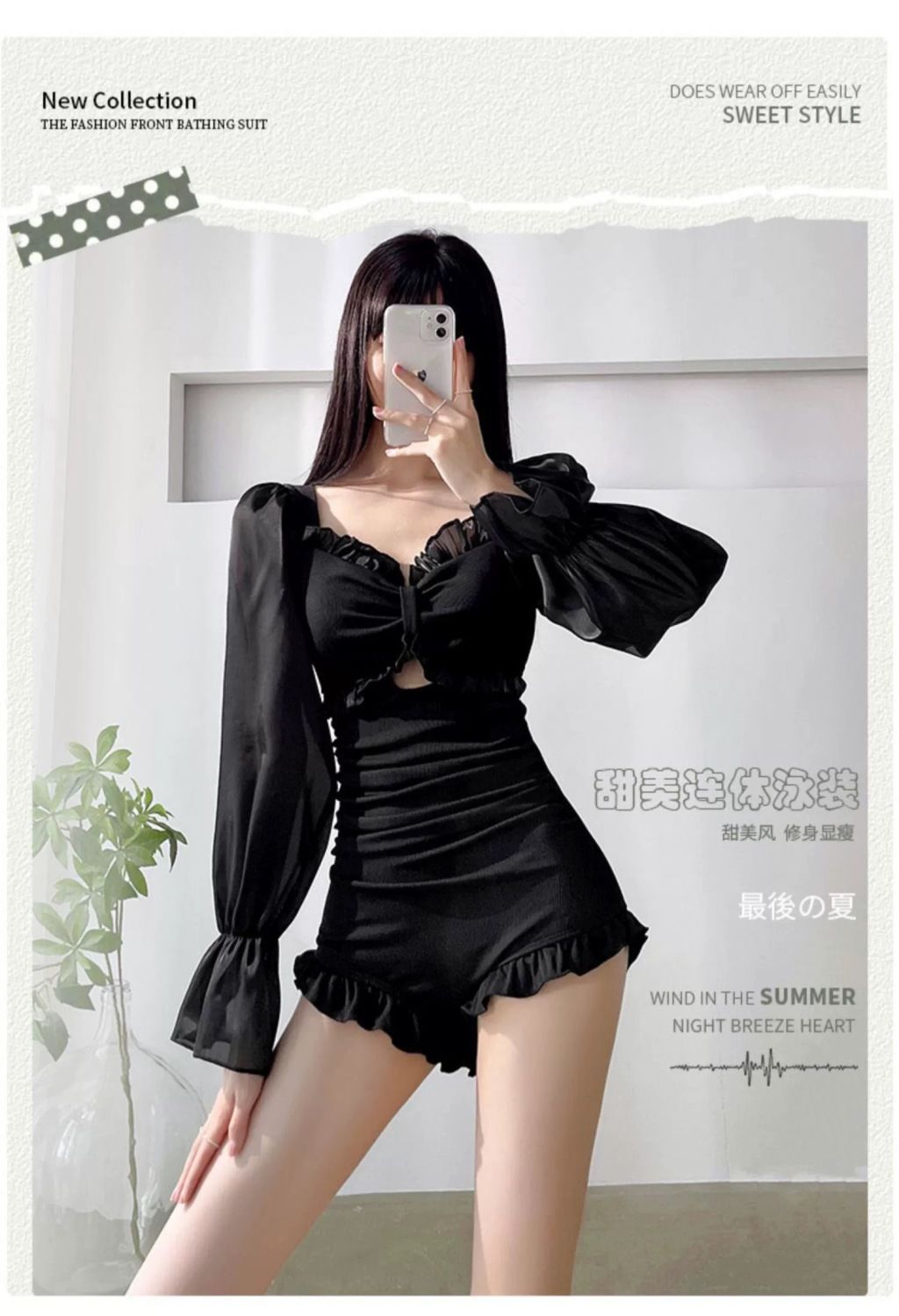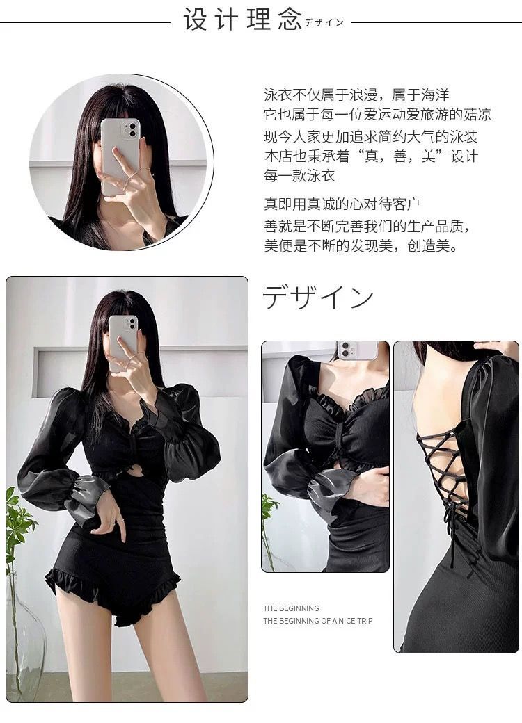 2025년 여름 신상 여성용 긴팔 수영복, 배를 커버하고 슬림하게 보여주는 여성용 보수적인 온천 원피스 고급 수영복스토어 가기