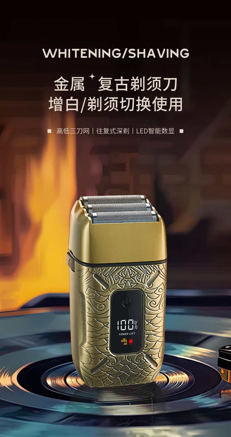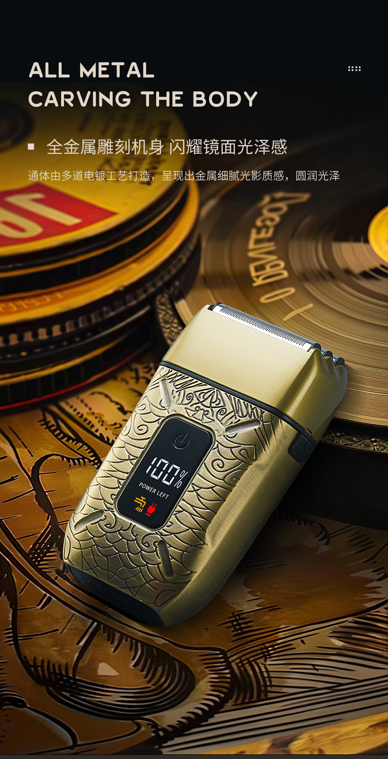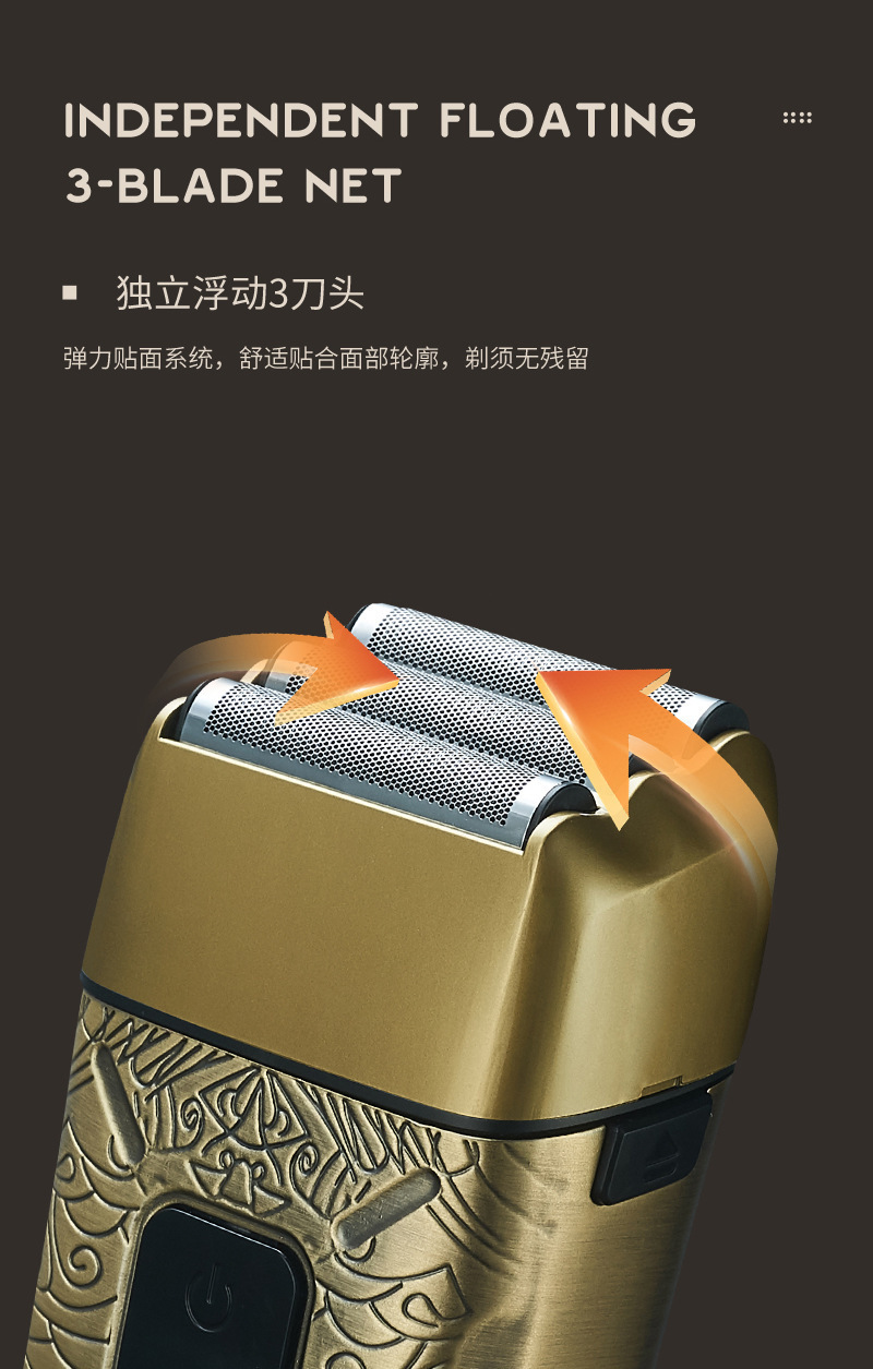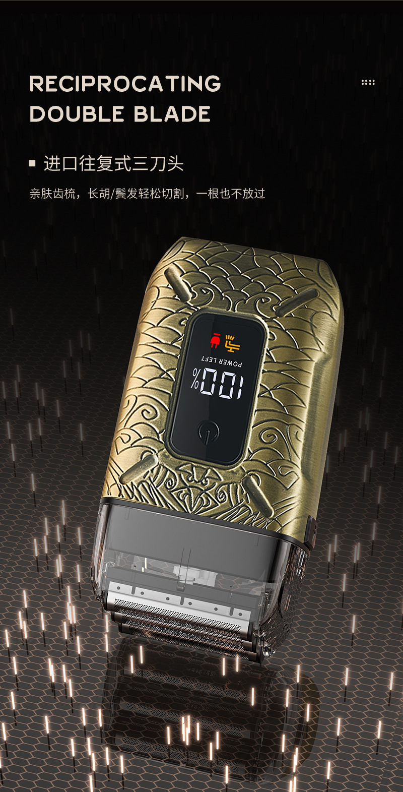 국경 간 금속 바디 왕복 고출력 디지털 디스플레이 남성 3 헤드 전기 면도기 두꺼운 하드 수염