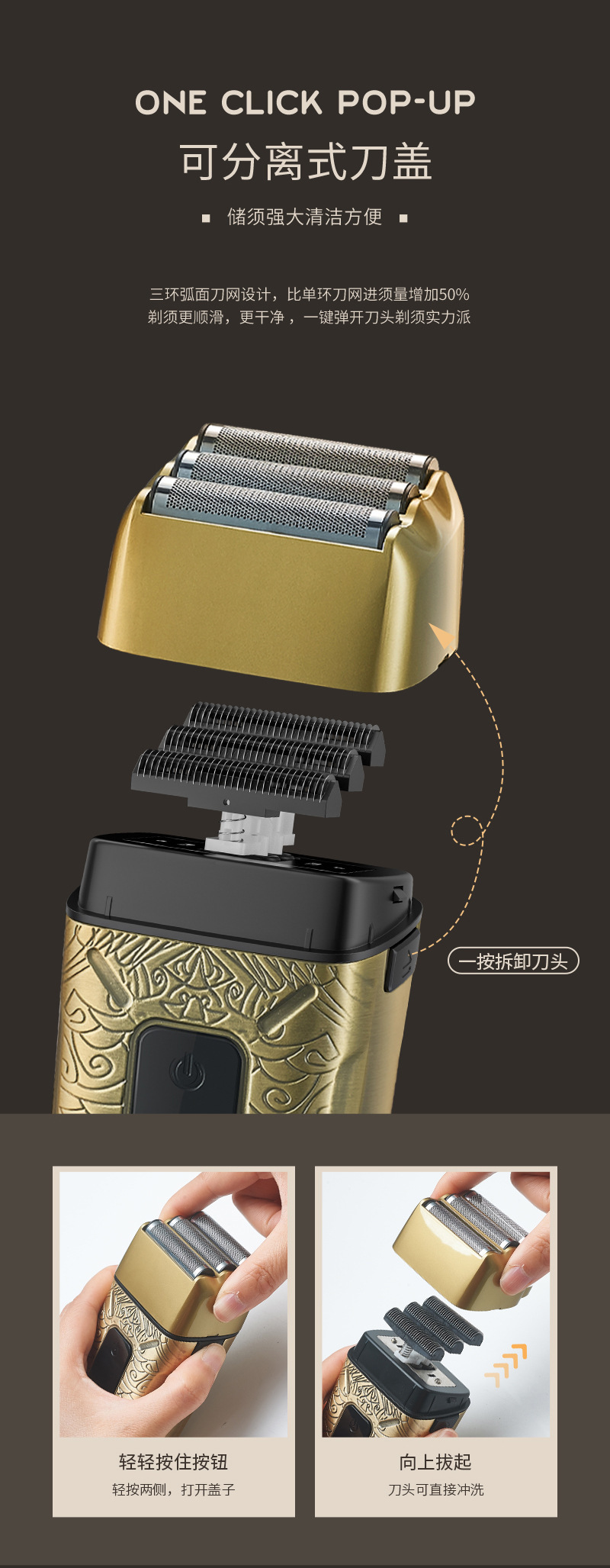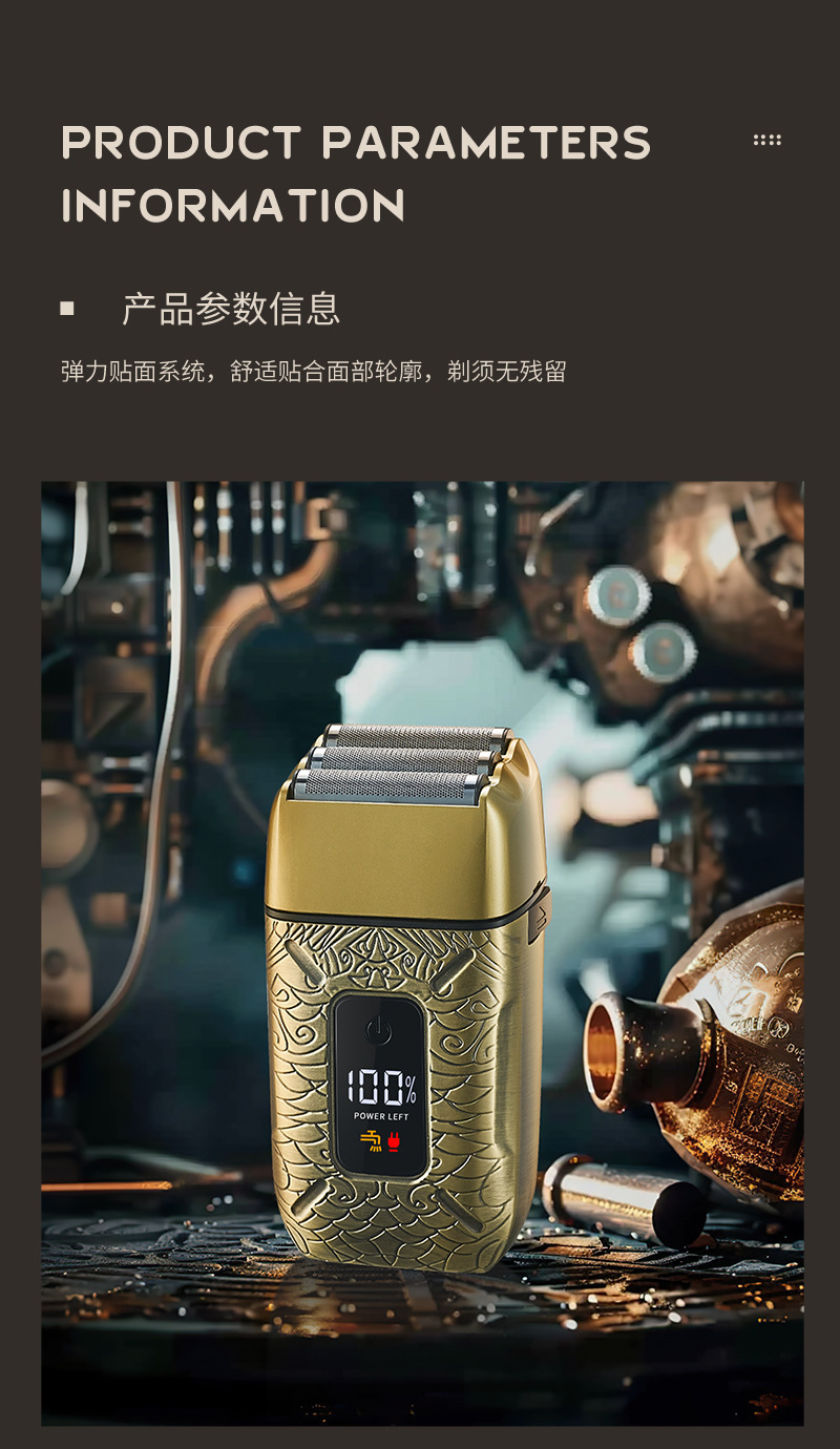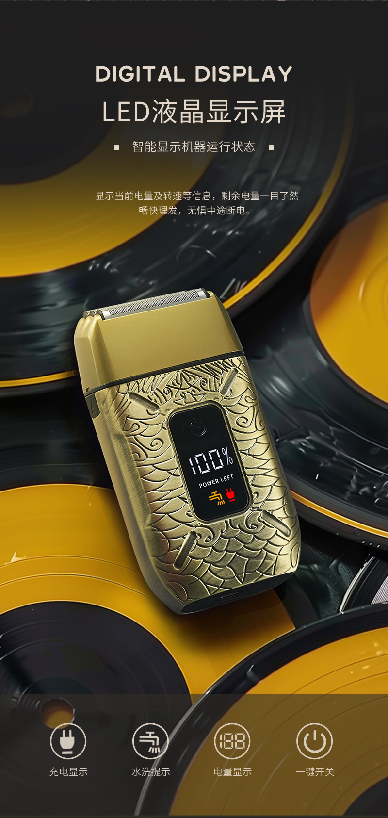 국경 간 금속 바디 왕복 고출력 디지털 디스플레이 남성 3 헤드 전기 면도기 두꺼운 하드 수염