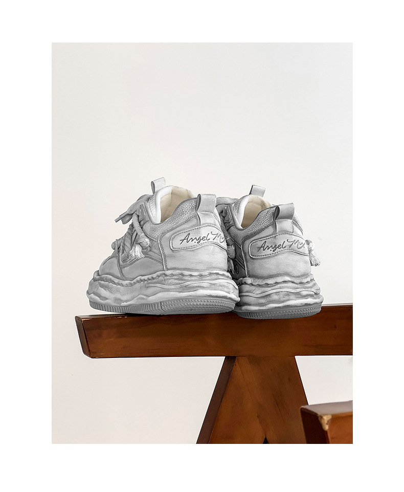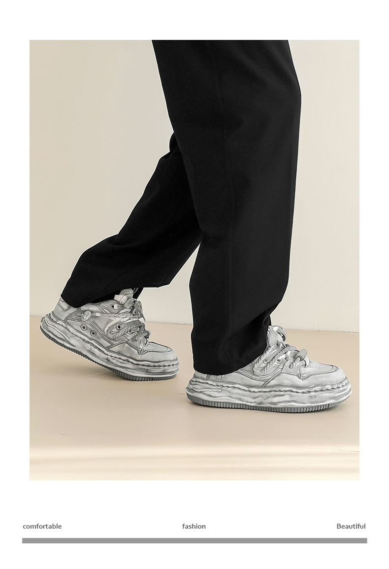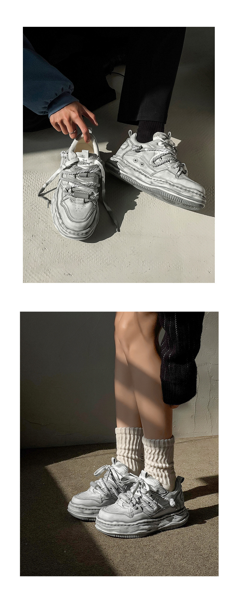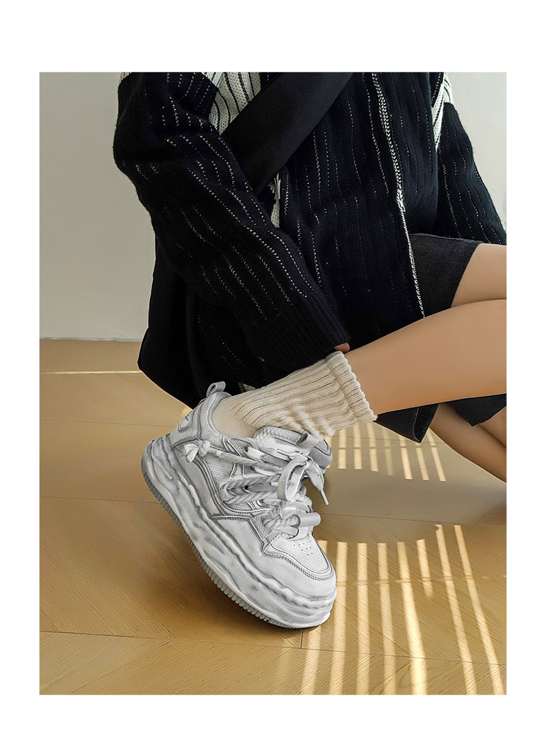 보이지 않는 높이 증가 7cm 더러운 신발 오래 된 색상 광택 남성 신발 두꺼운 밑창 올 매치 캐주얼 커플의 용해 된 보드 신발스토어 가기