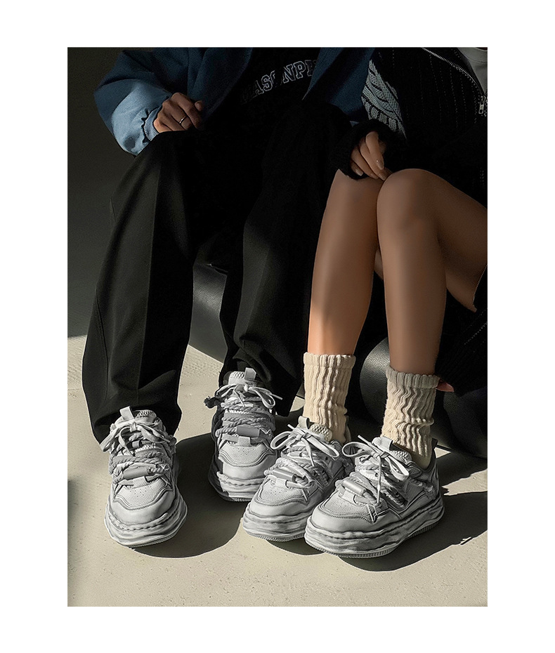보이지 않는 높이 증가 7cm 더러운 신발 오래 된 색상 광택 남성 신발 두꺼운 밑창 올 매치 캐주얼 커플의 용해 된 보드 신발