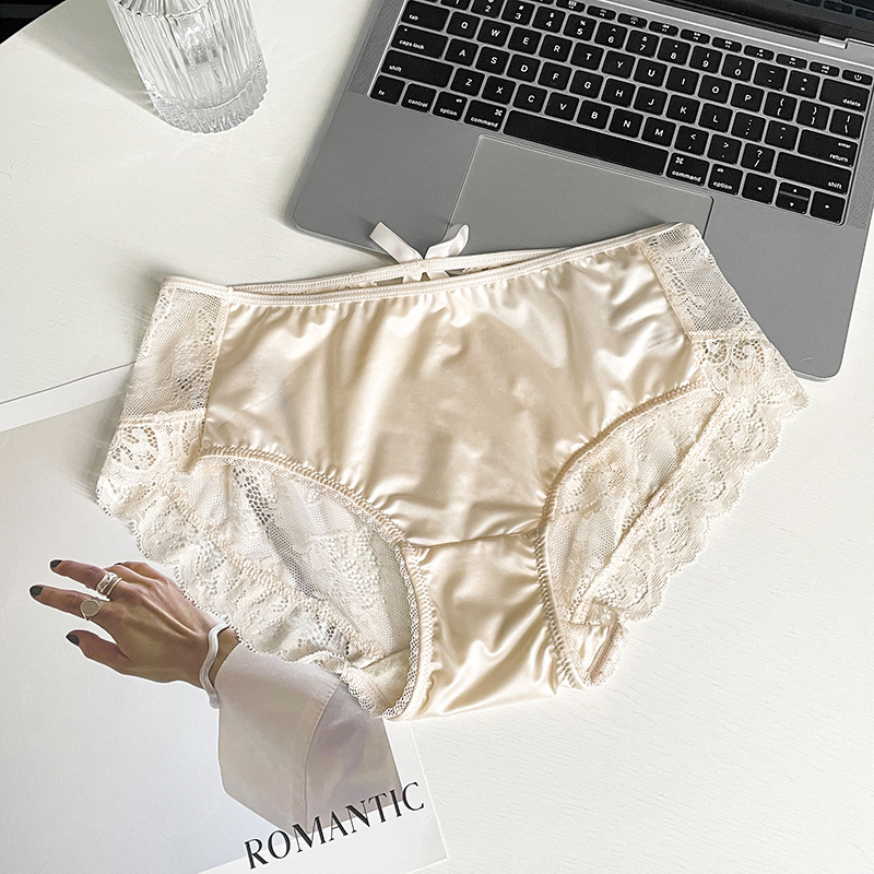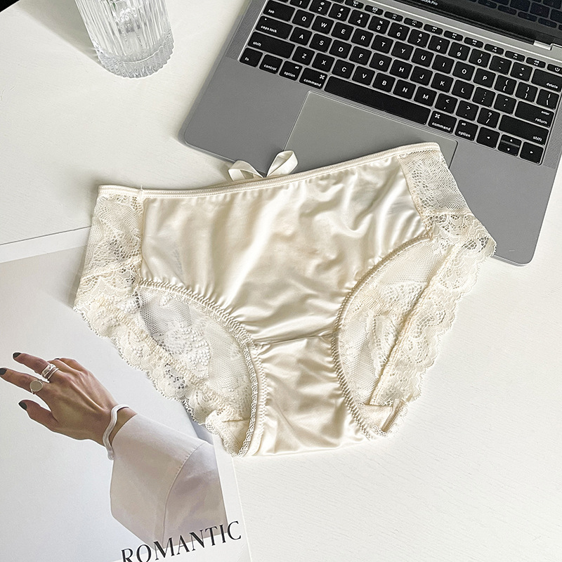 새로운 스타일 속옷 여성의 중간 허리 트레이스 아이스 실크 벗은 항균 소녀의 섹시한 퓨어 레이스 브리프 속옷스토어 가기