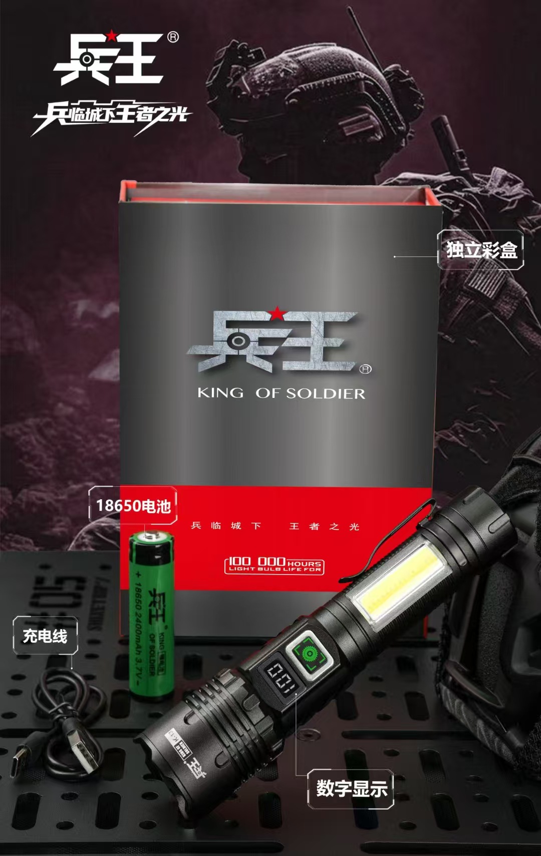 강한 빛 손전등 야외 다기능 장거리 조명 손전등 흰색 레이저 측면 조명 LCD 디지털 디스플레이 K13 군사 왕