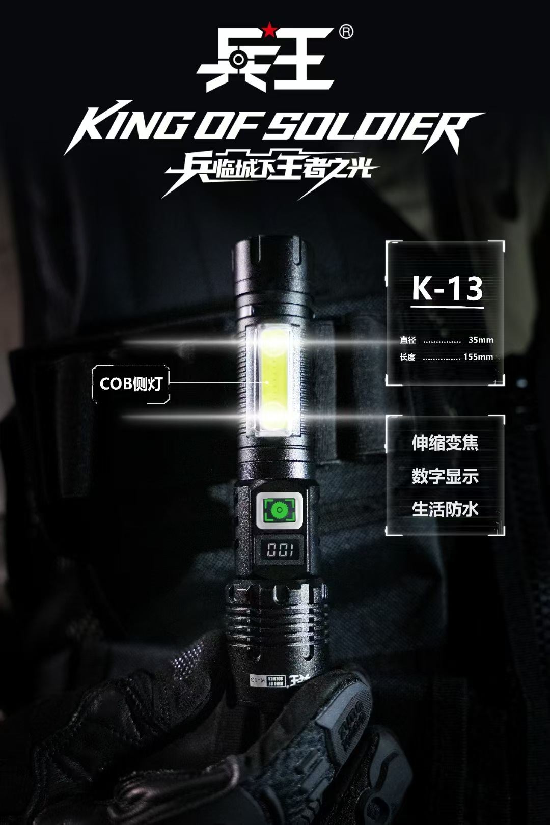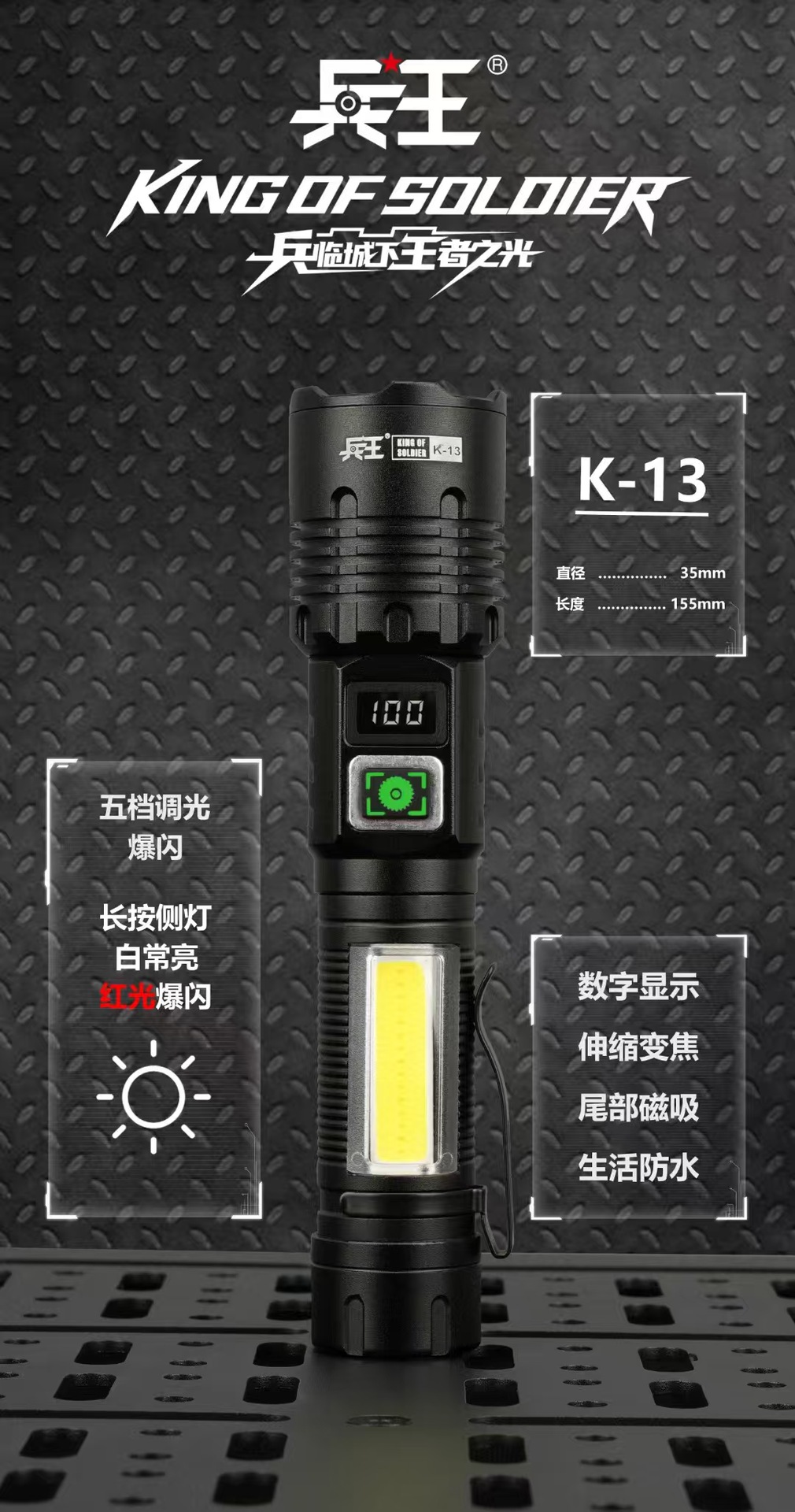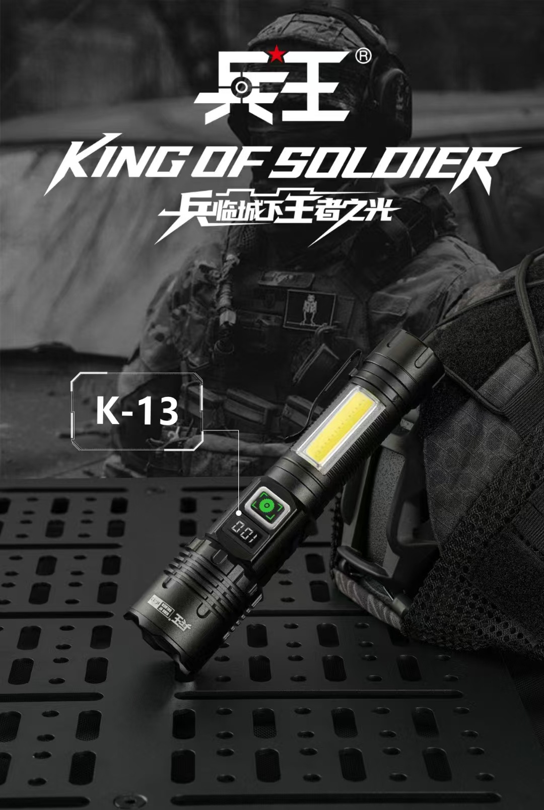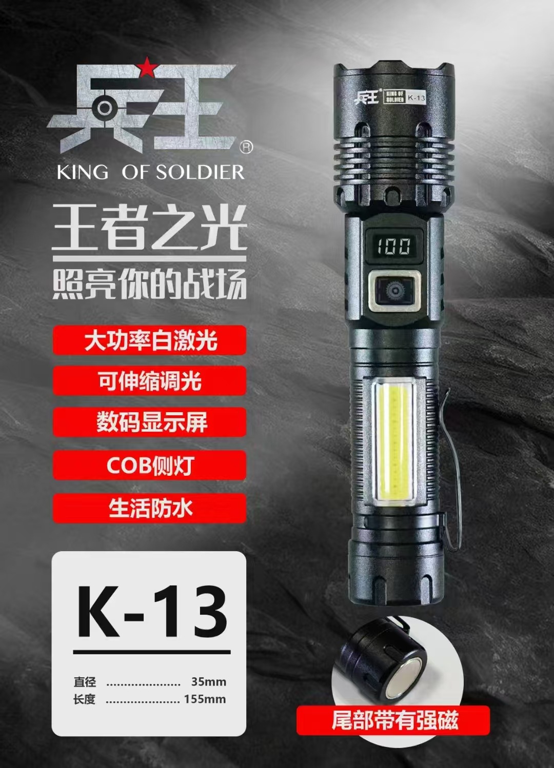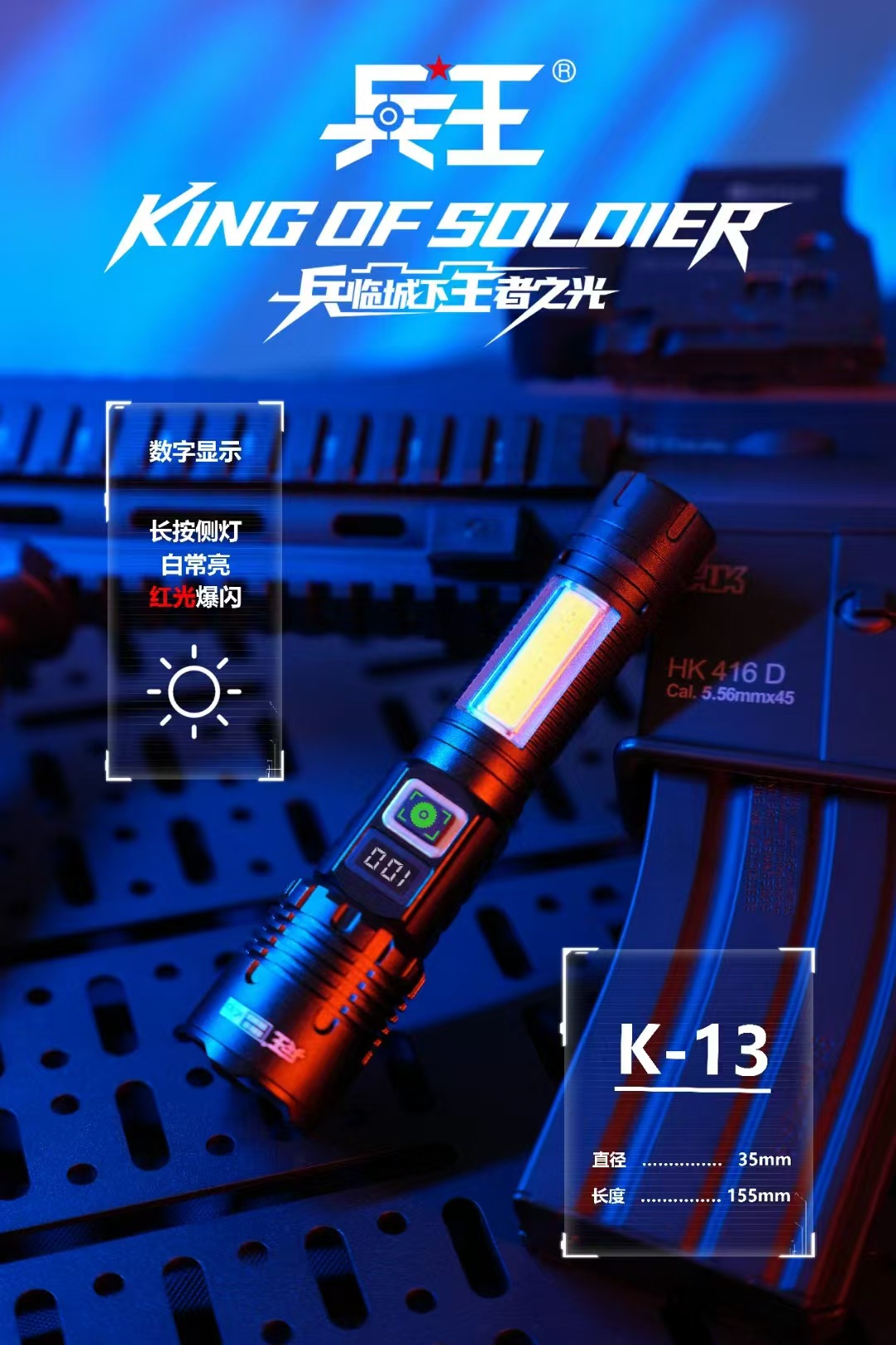 강한 빛 손전등 야외 다기능 장거리 조명 손전등 흰색 레이저 측면 조명 LCD 디지털 디스플레이 K13 군사 왕스토어 가기