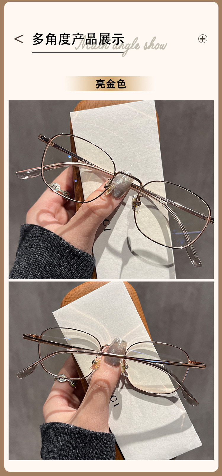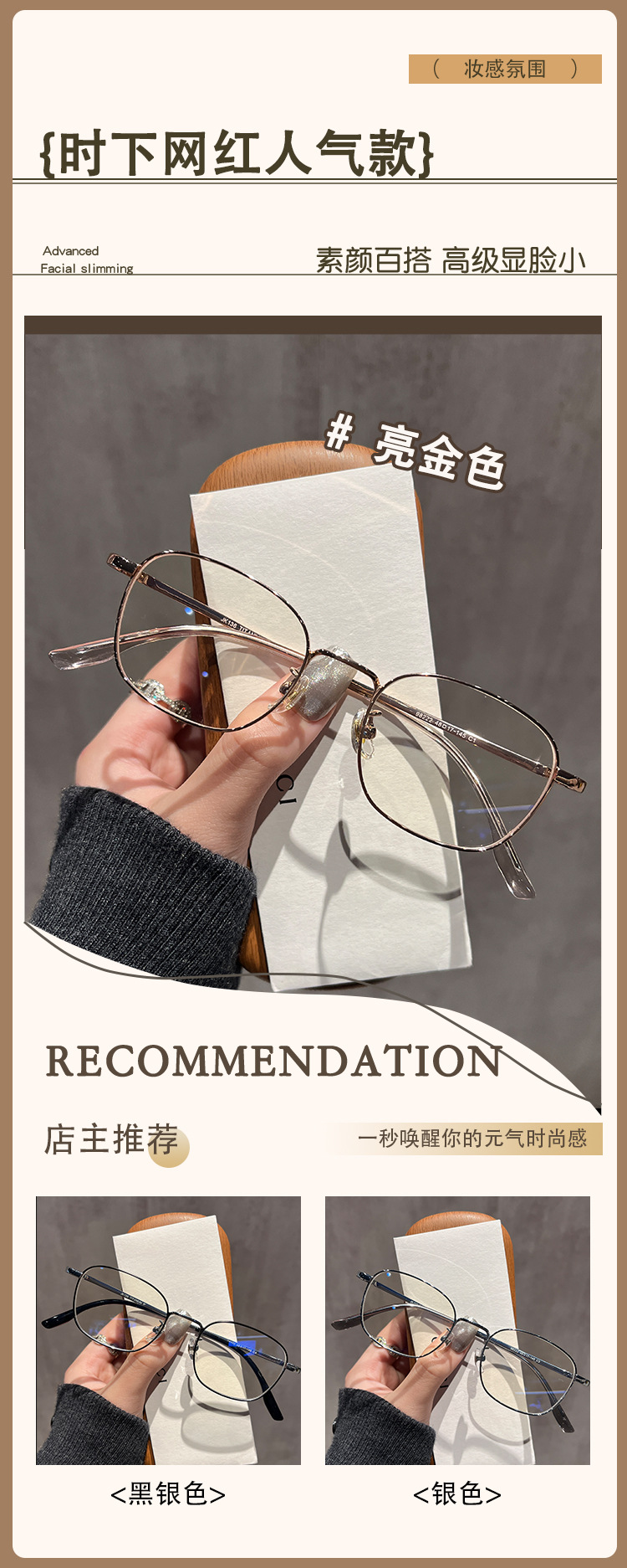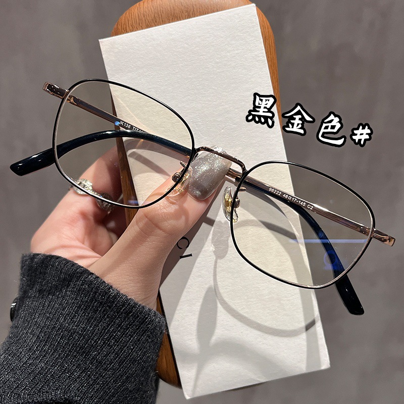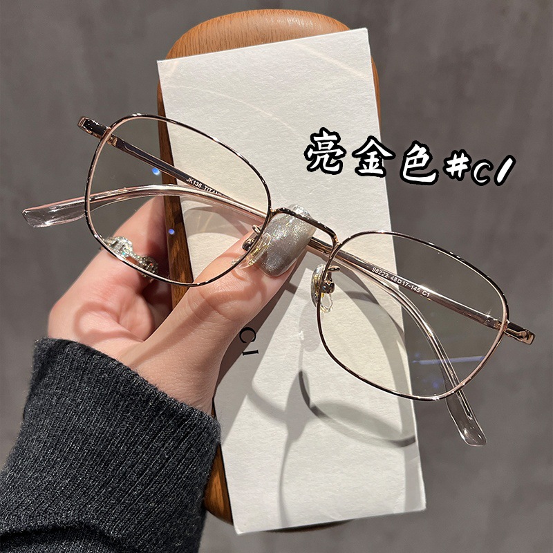 작은 사각형 티타늄 프레임 조커 근시 안경 프레임 남성과 여성 도매 중립 가능 가스 질감 밝은 골드 평면 거울