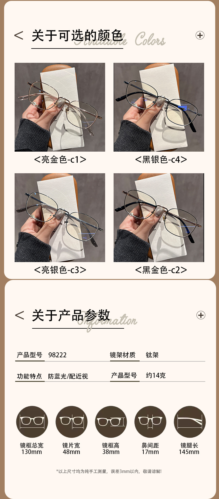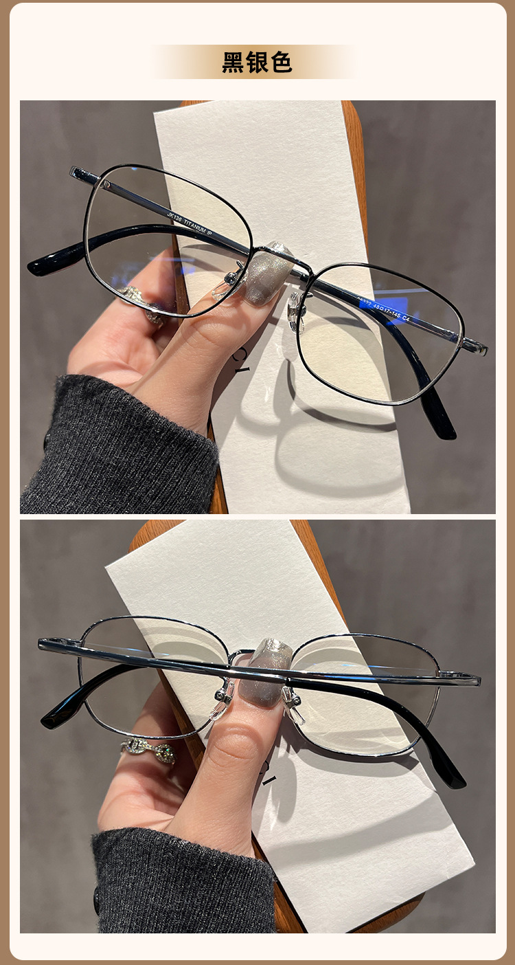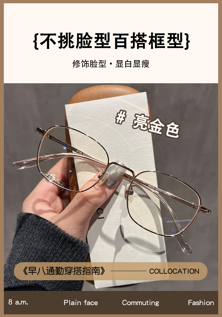 작은 사각형 티타늄 프레임 조커 근시 안경 프레임 남성과 여성 도매 중립 가능 가스 질감 밝은 골드 평면 거울