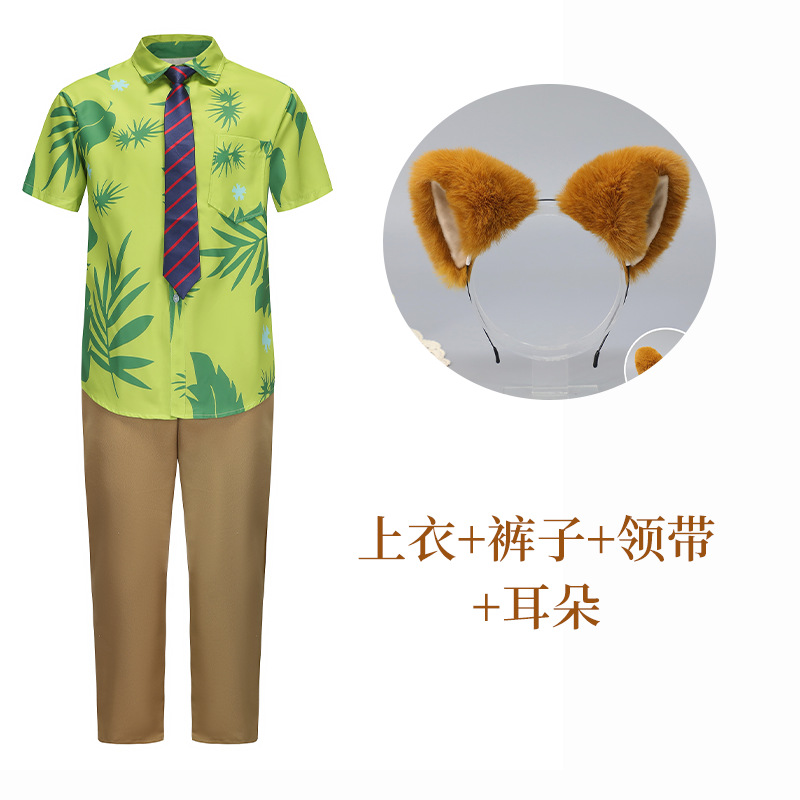 키즈 성인 COSPLAY 미친 동물 닉 폭스 짧은 소매 셔츠 헤드웨어 닉 폭스 의상을 원피스스토어 가기