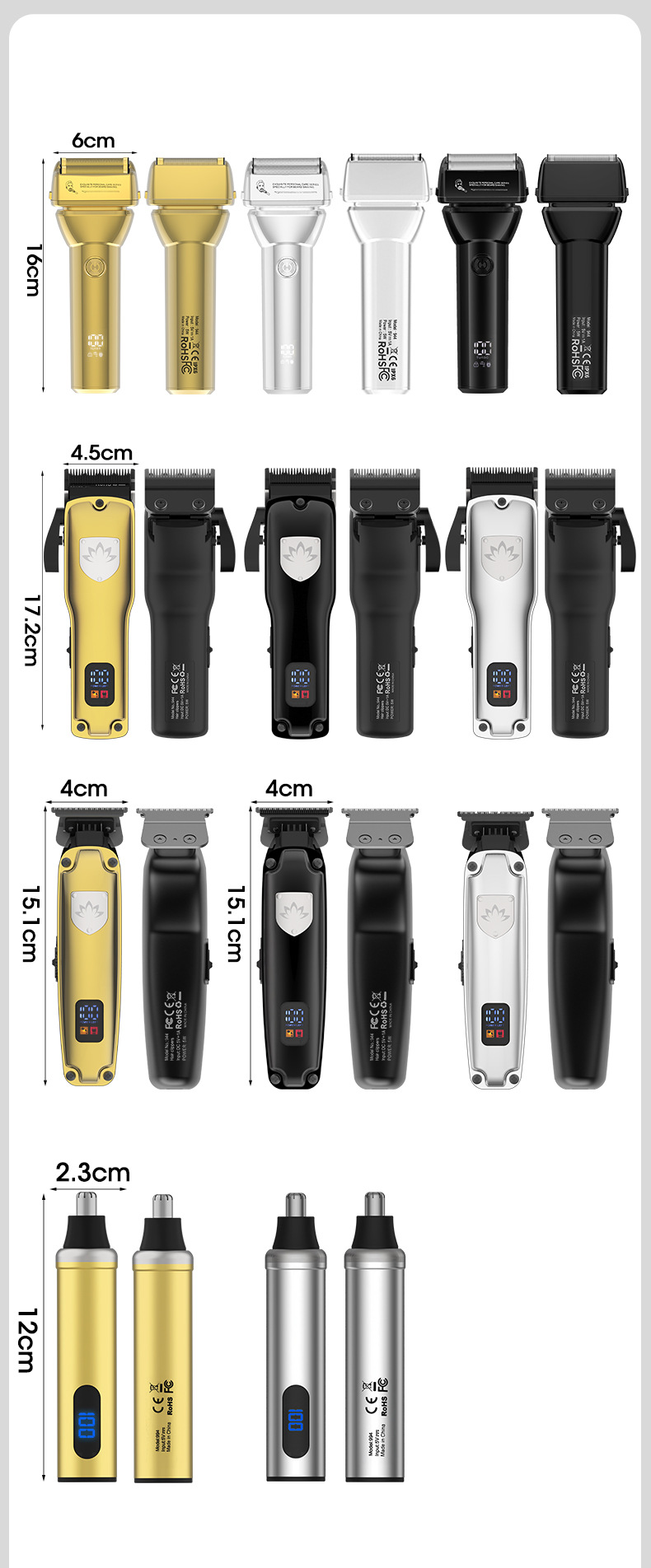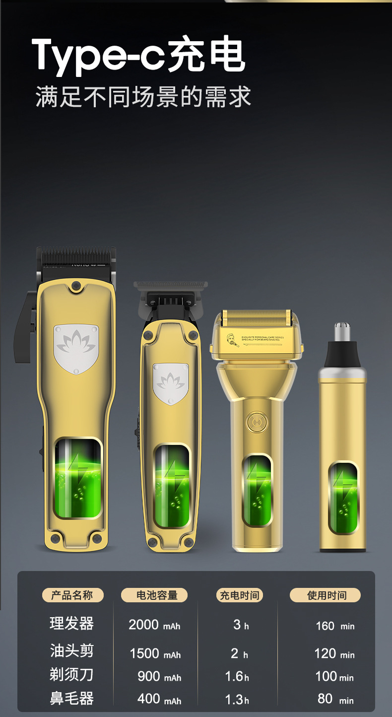 电池容量:2000mAh(大)/1500mAh(小)剃须刀900 mah /400mAh(鼻毛器)