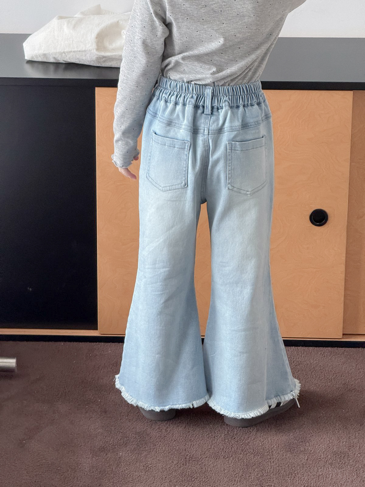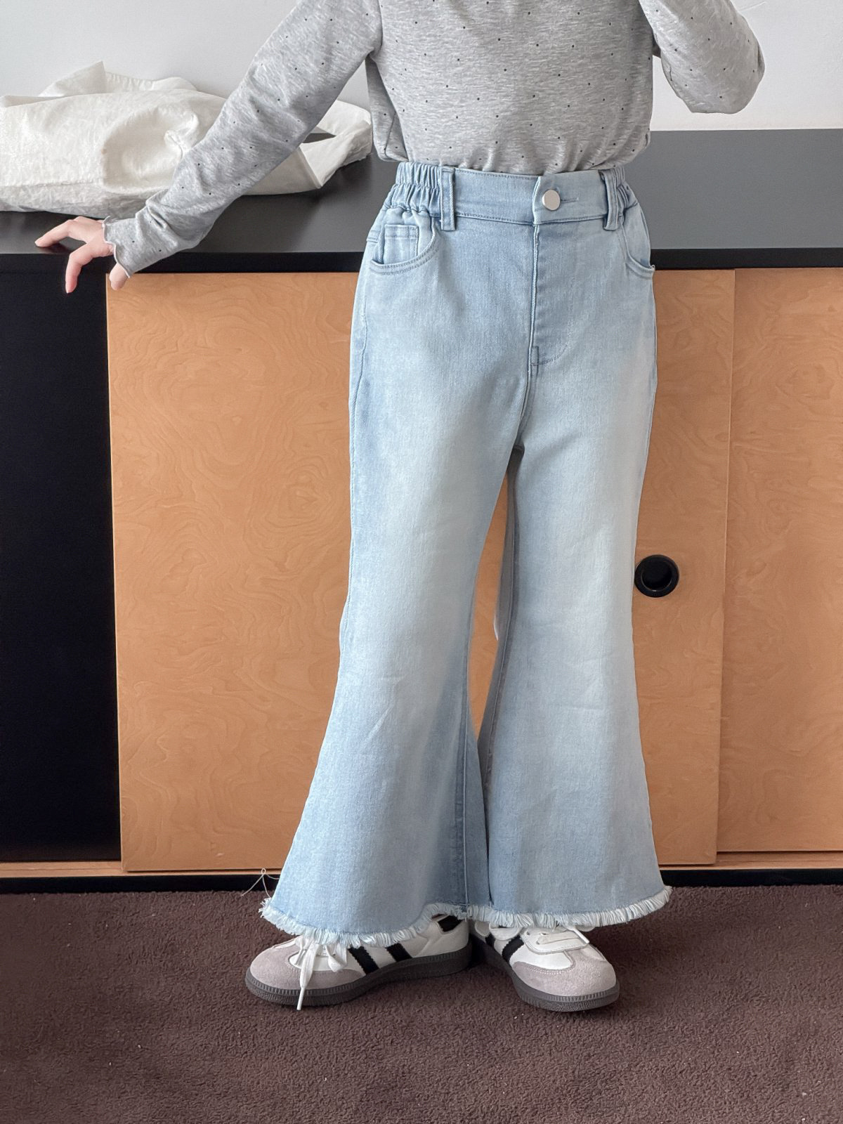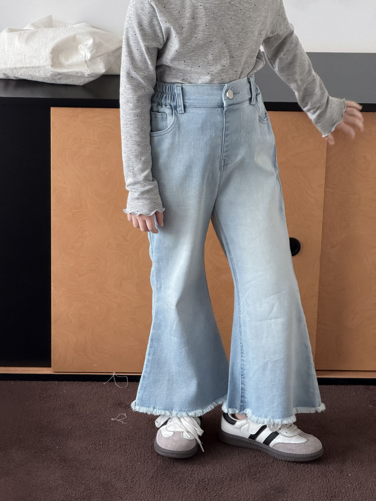 소녀 데님 플라 팬츠 2025 봄 새로운 스트레치 올 매치 소프트 왁스 청바지 어린이 서양식 아우터웨어 바지스토어 가기
