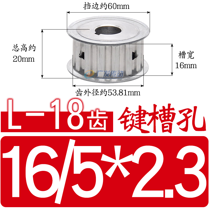 • L-18 치아, 양면 플랫, 홈 폭 16, 내부 구멍 12.7