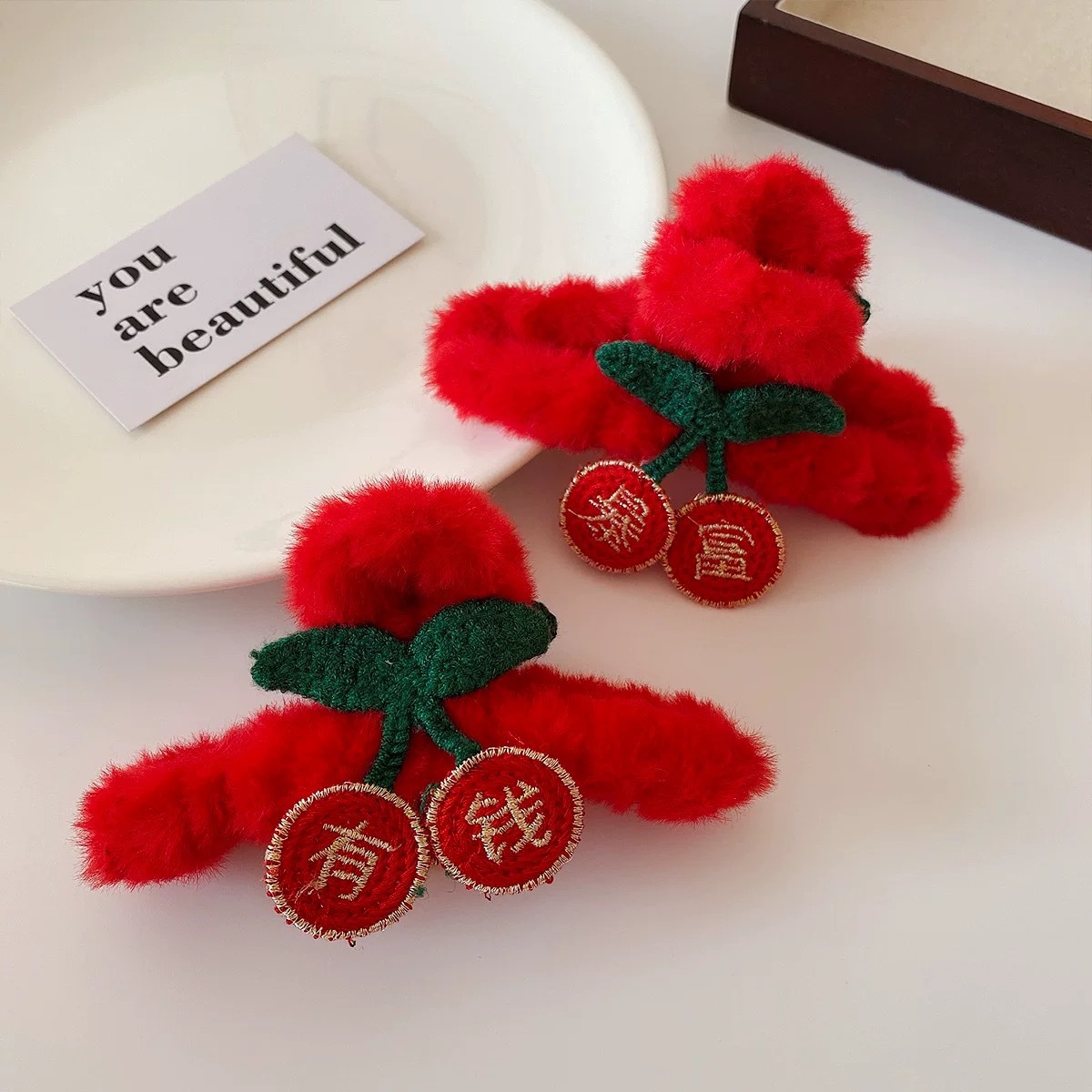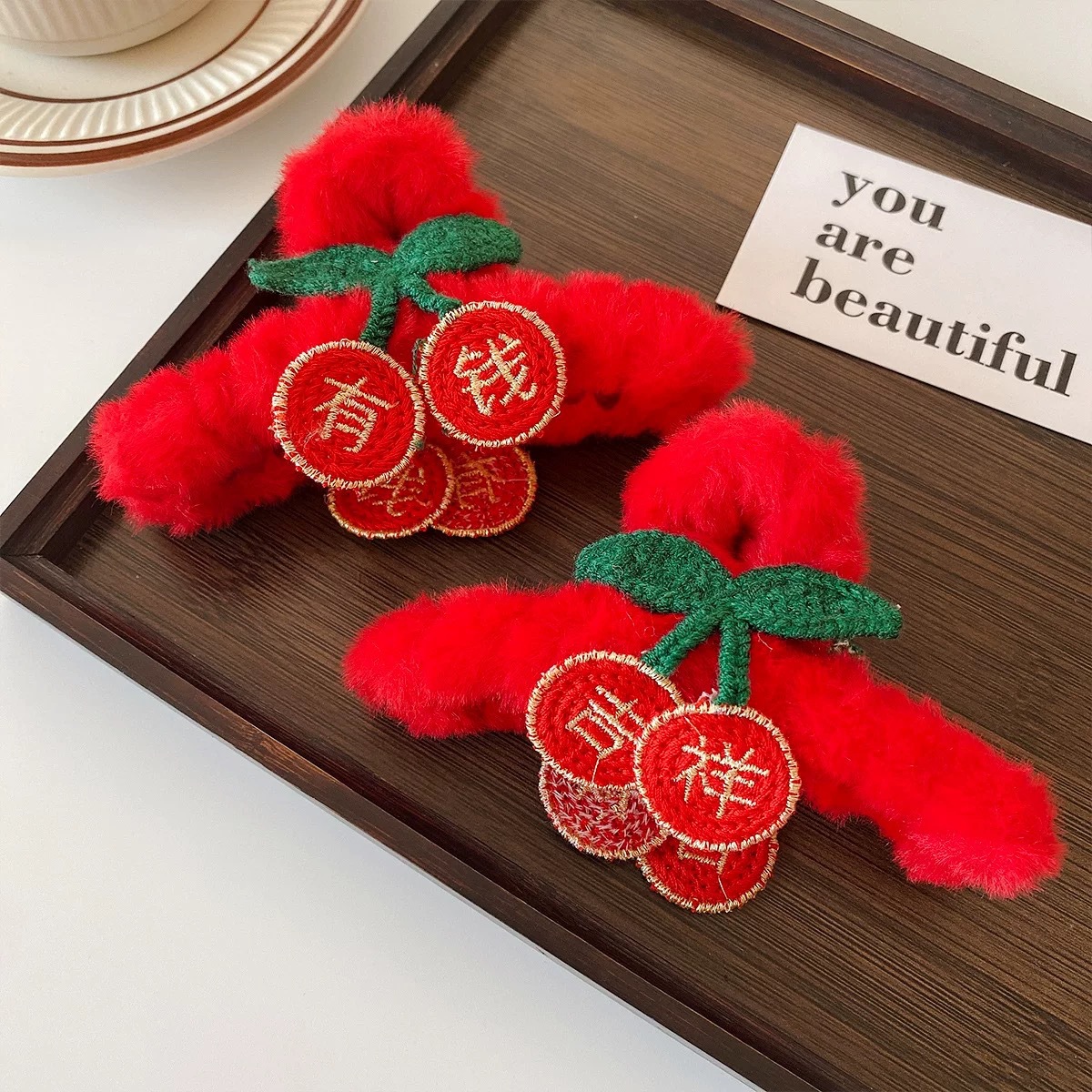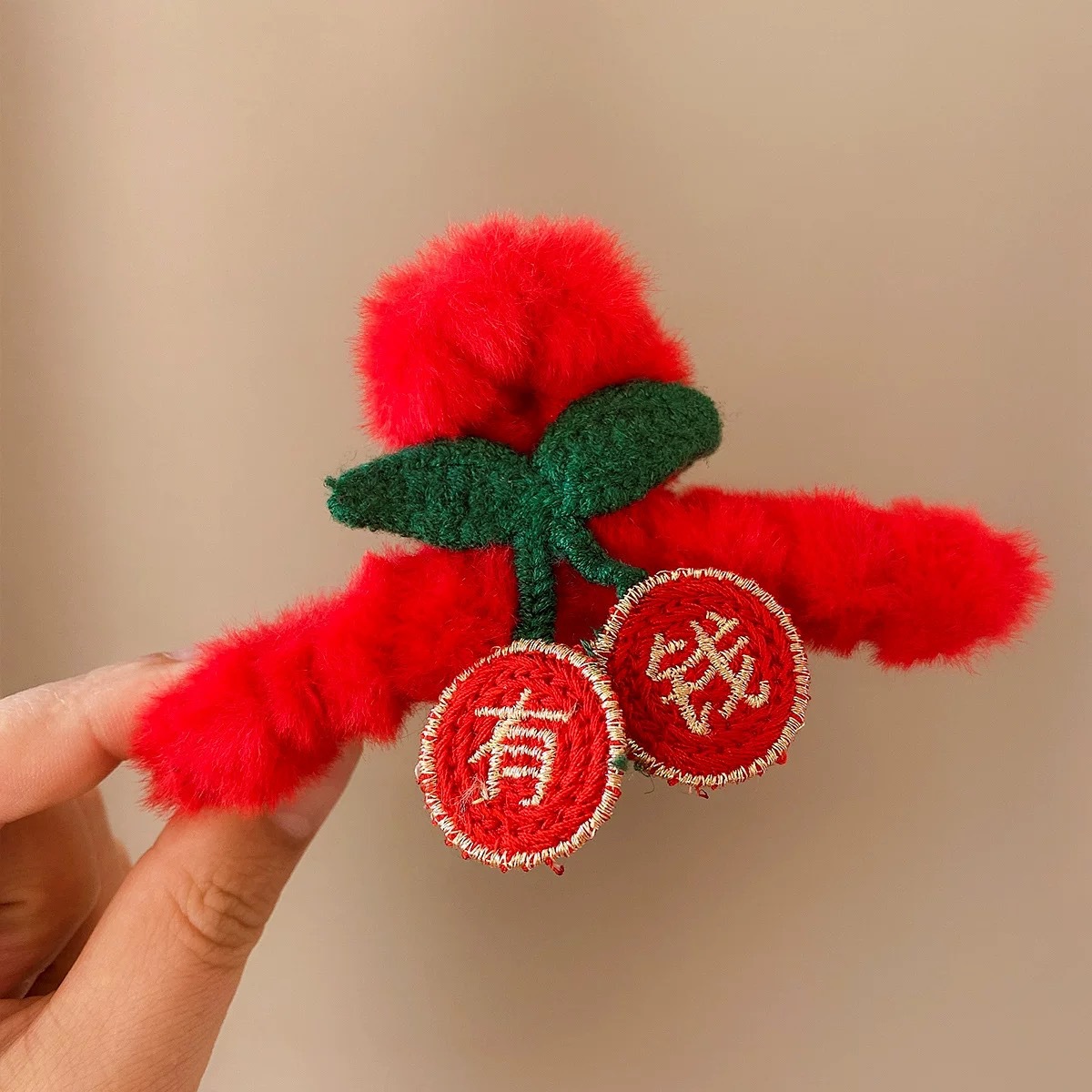 붉은 새해 봉제 머리핀 여성의 머리 뒤 축제 리치 그랩 클립 년 뱀 반 넥타이 헤어 상어 클립 헤드웨어