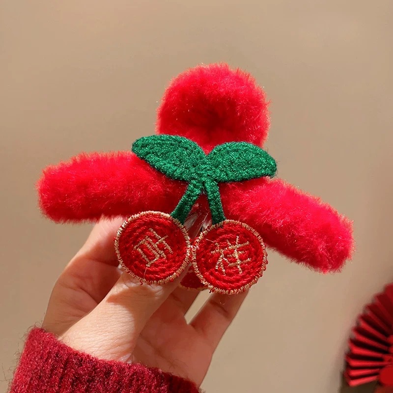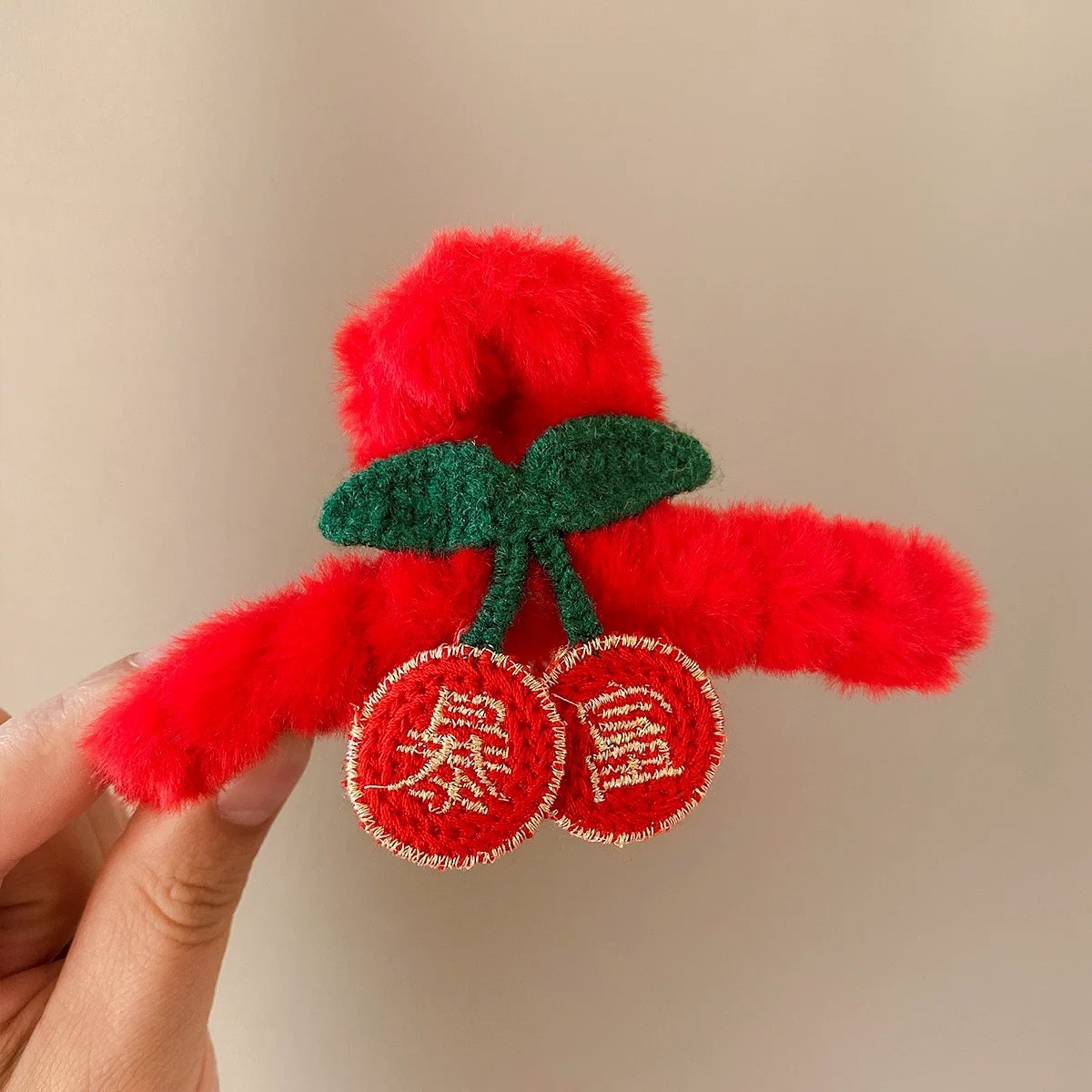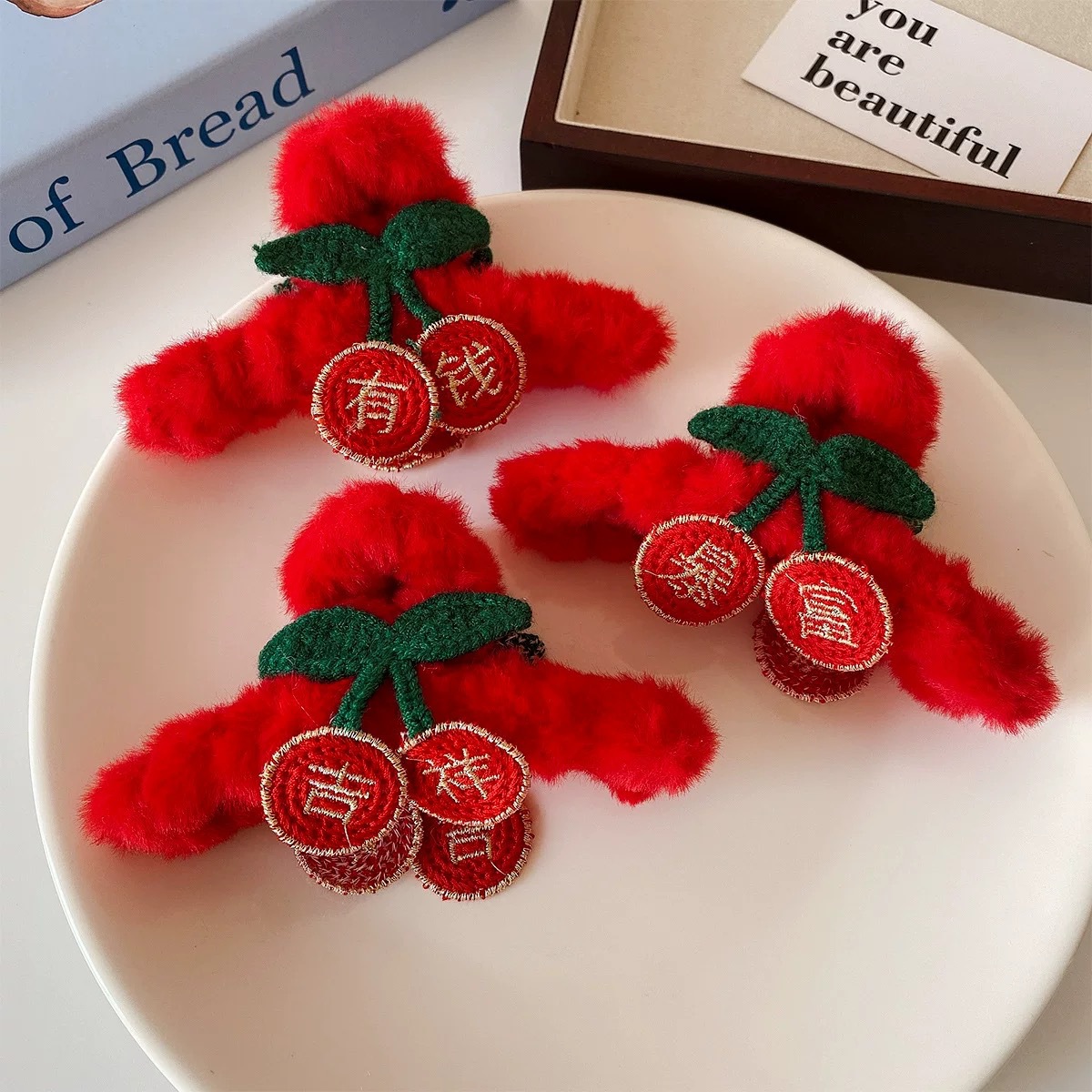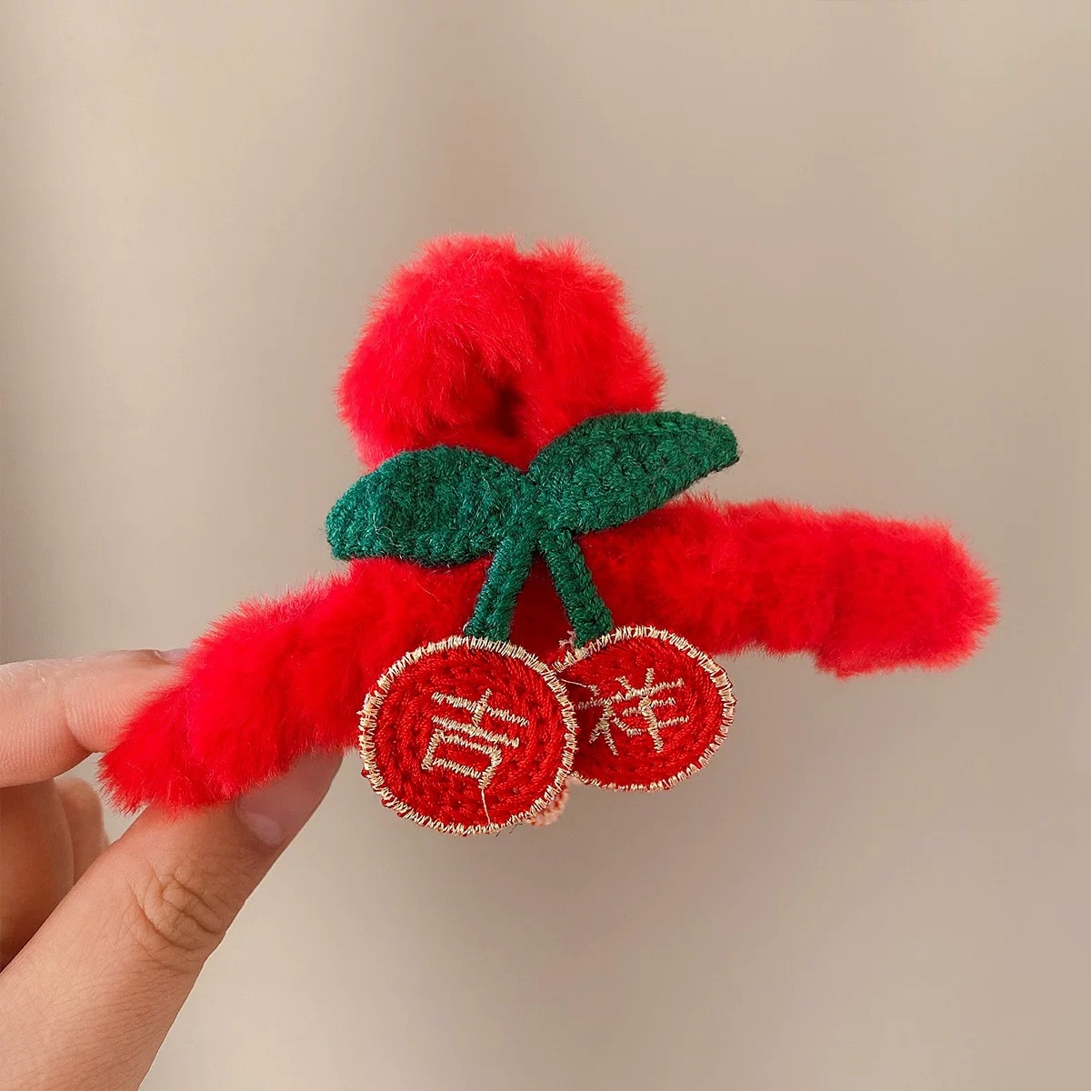 붉은 새해 봉제 머리핀 여성의 머리 뒤 축제 리치 그랩 클립 년 뱀 반 넥타이 헤어 상어 클립 헤드웨어