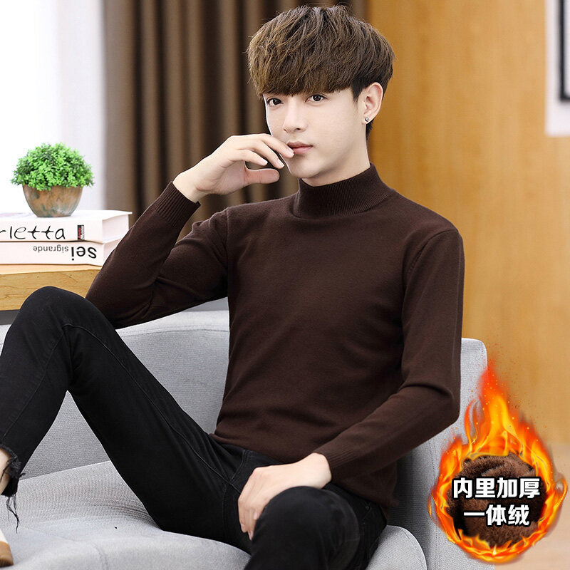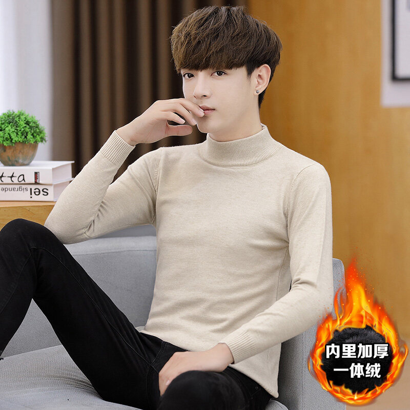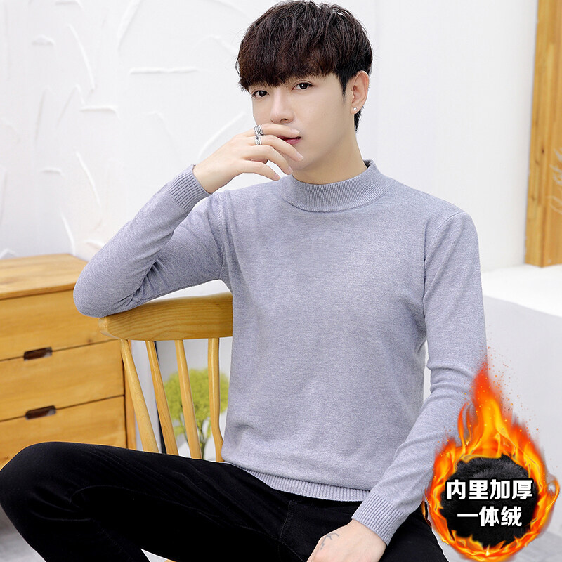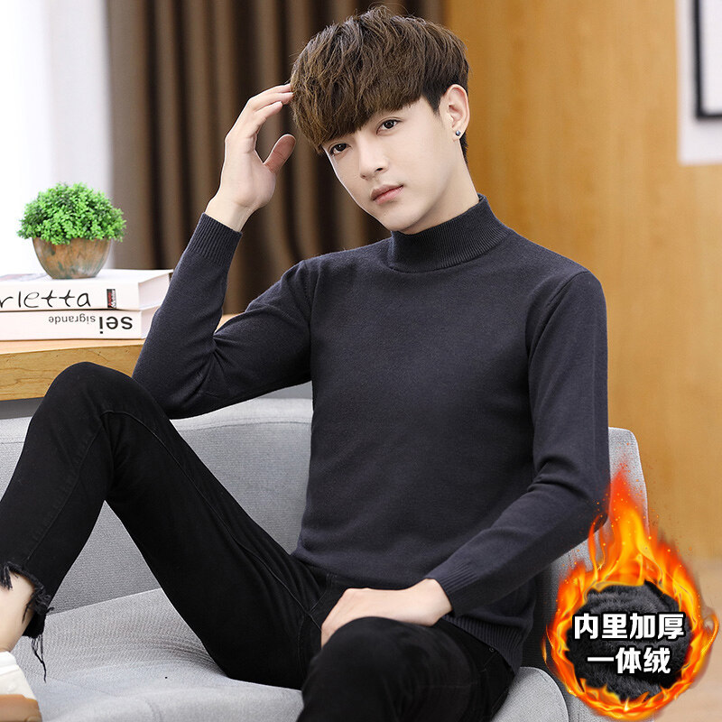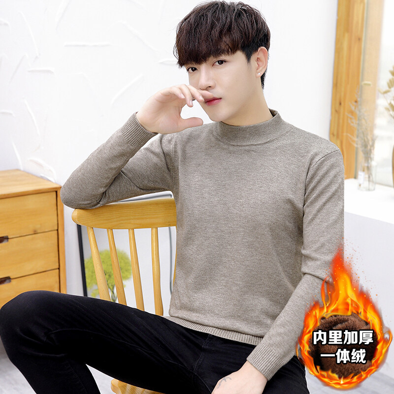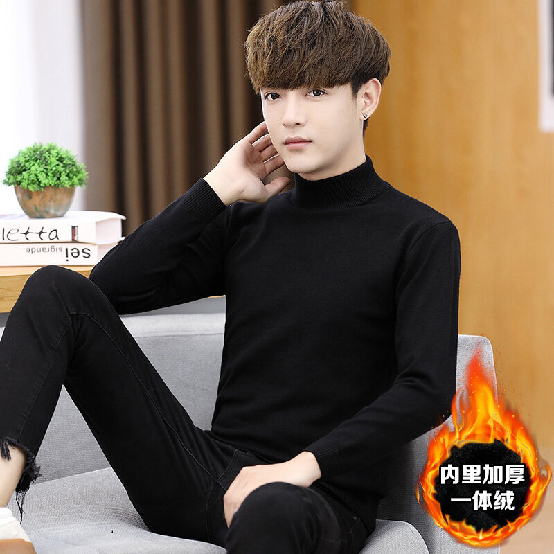 남자 니트웨어 겨울 기모 두꺼운 단색 하이 퀄리티 풀오버 스웨터 니트 스웨터 원피스 벨벳스토어 가기