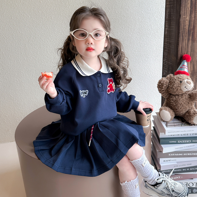 여아 플리츠 스커트 세트 봄 가을 2025 신상 패션 어린 소녀 스타일리시 투피스 세트 유아 아동복스토어 가기