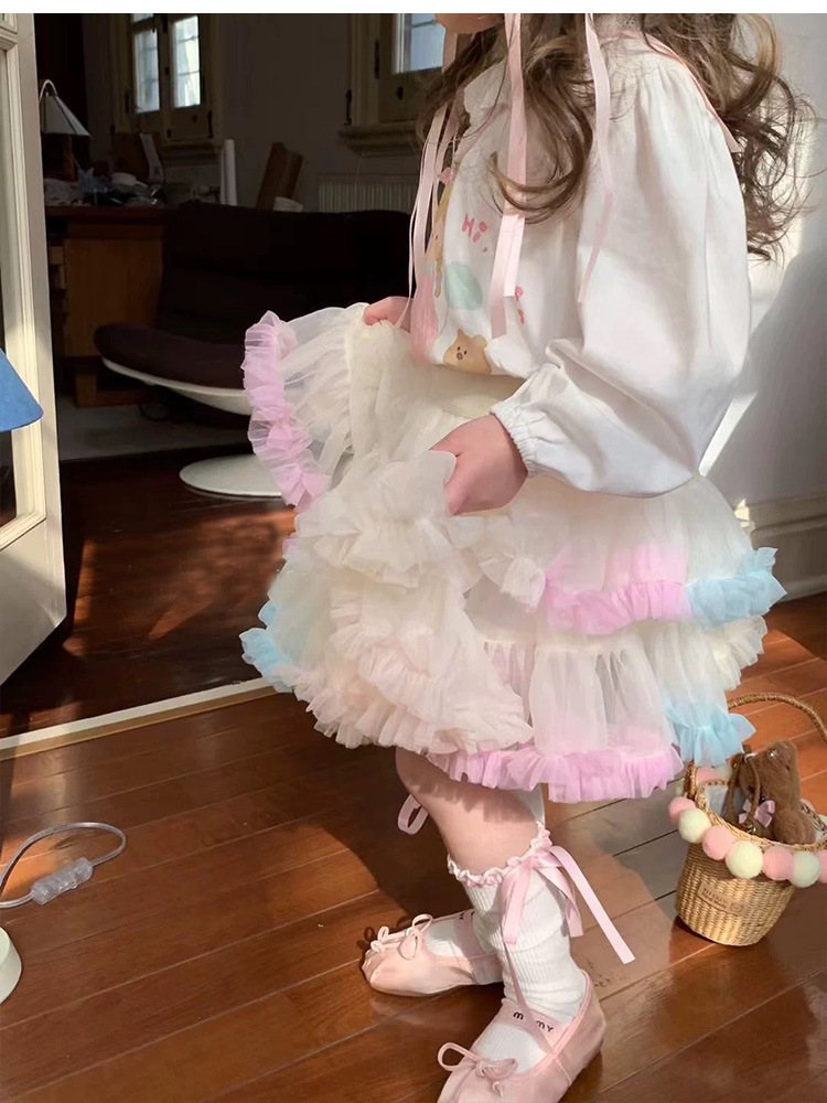 어린 소녀의 케이크 메쉬 공주 스커트 소녀의 그라디언트 투투 스커트 2025 봄 새로운 아기의 퍼프 스커트