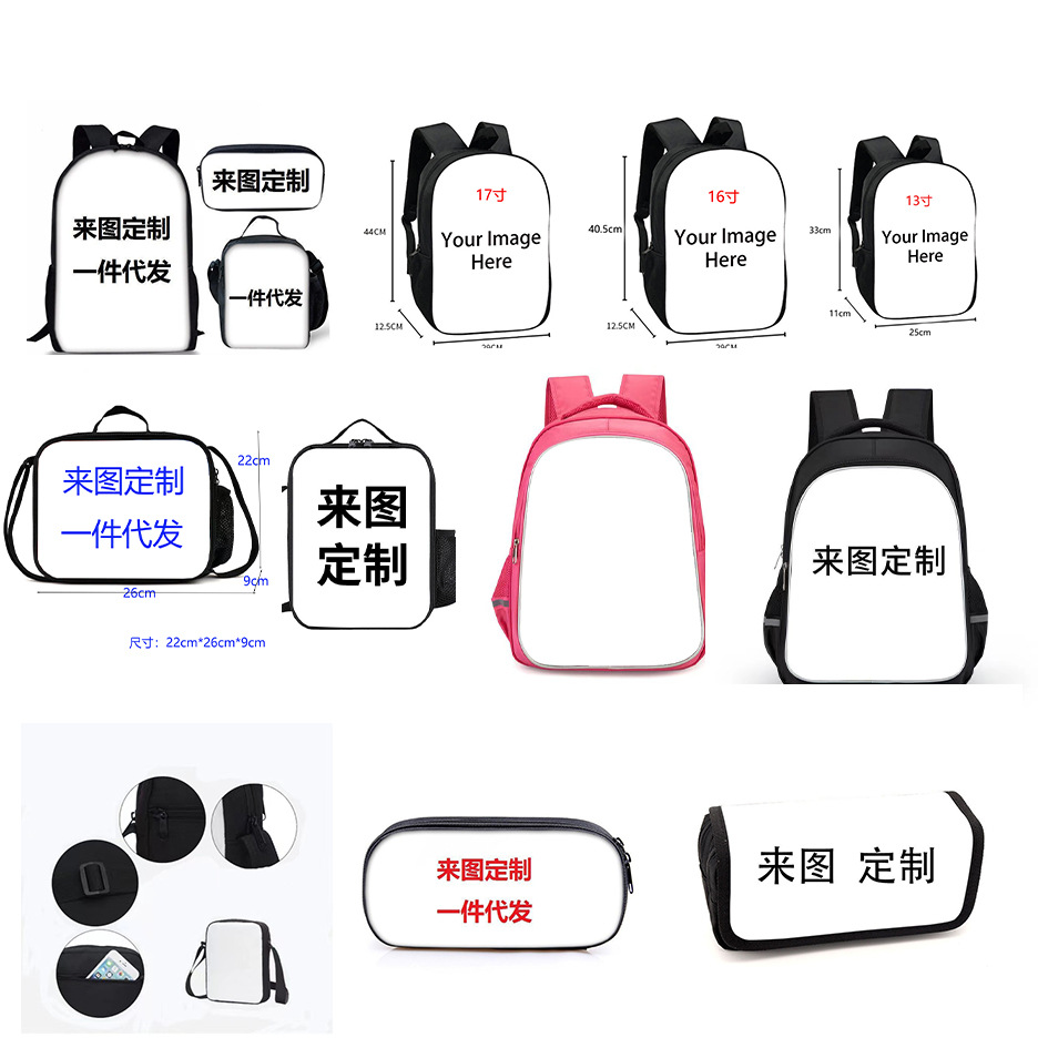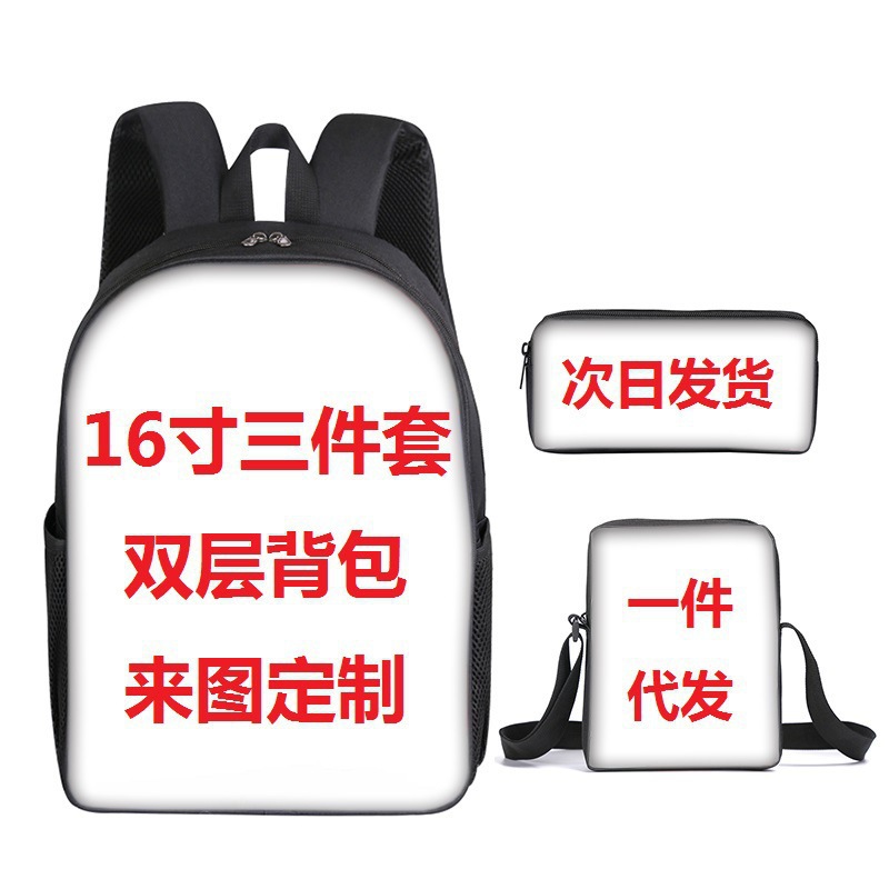 국경 간 핫 구매 스타일, 3 종 세트 더블 레이어 스쿨 백 식사 가방 사첼 연필 가방스토어 가기