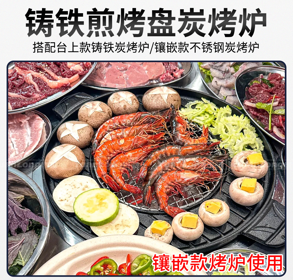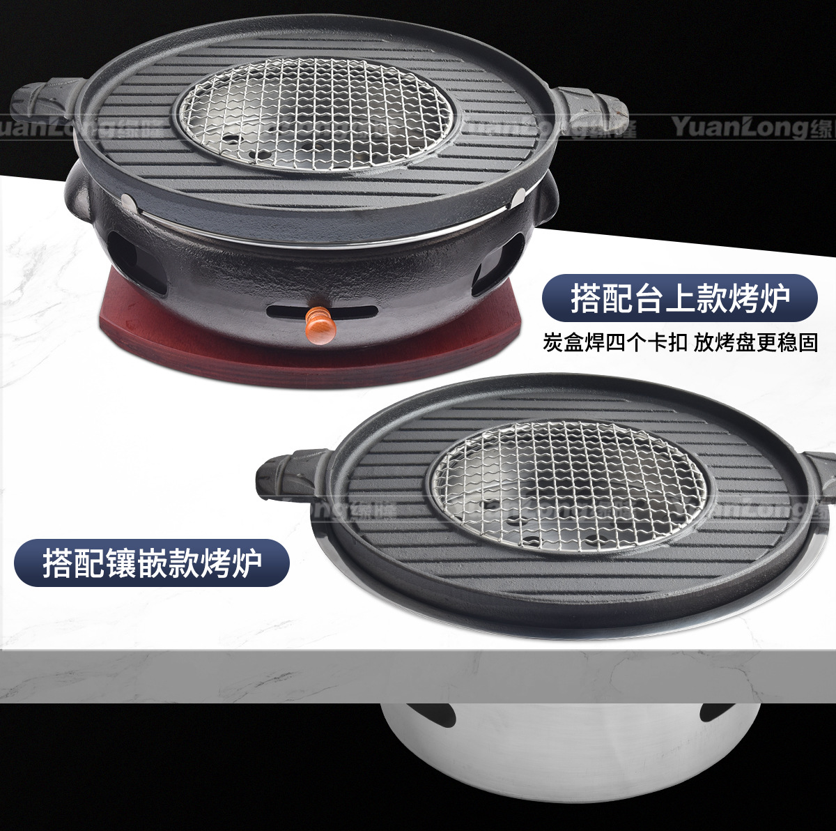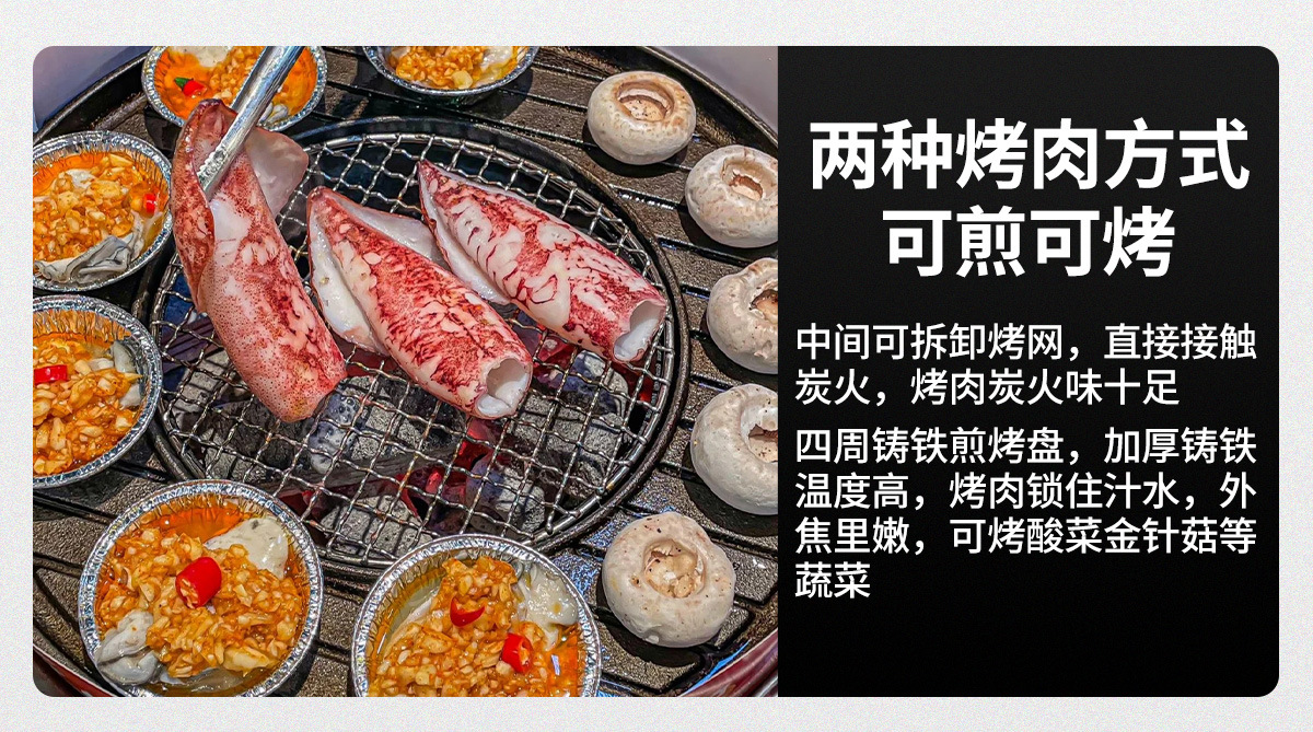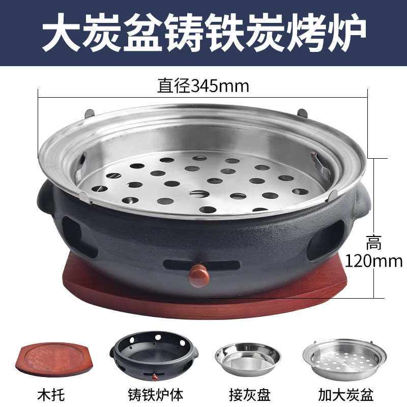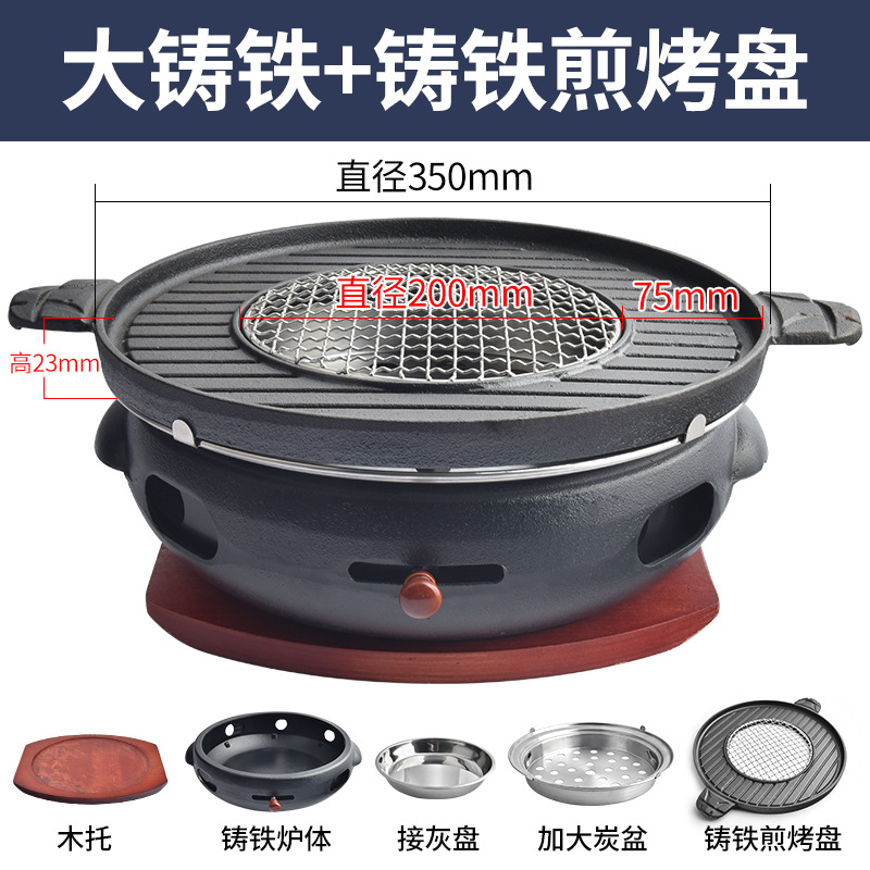 한국 BBQ 오븐 상업용 주철 탄소 오븐 튀김 및 굽는 주철 원피스 플레이트 바베큐 샵 대형 숯 분지 바베큐 오븐