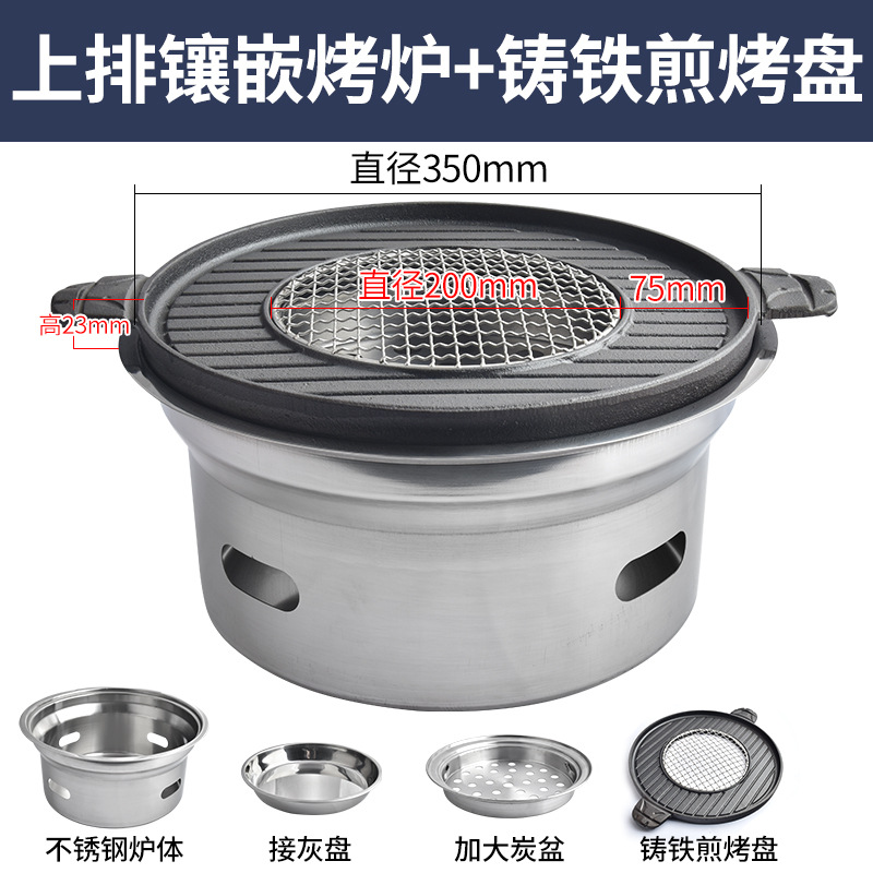 한국 BBQ 오븐 상업용 주철 탄소 오븐 튀김 및 굽는 주철 원피스 플레이트 바베큐 샵 대형 숯 분지 바베큐 오븐스토어 가기