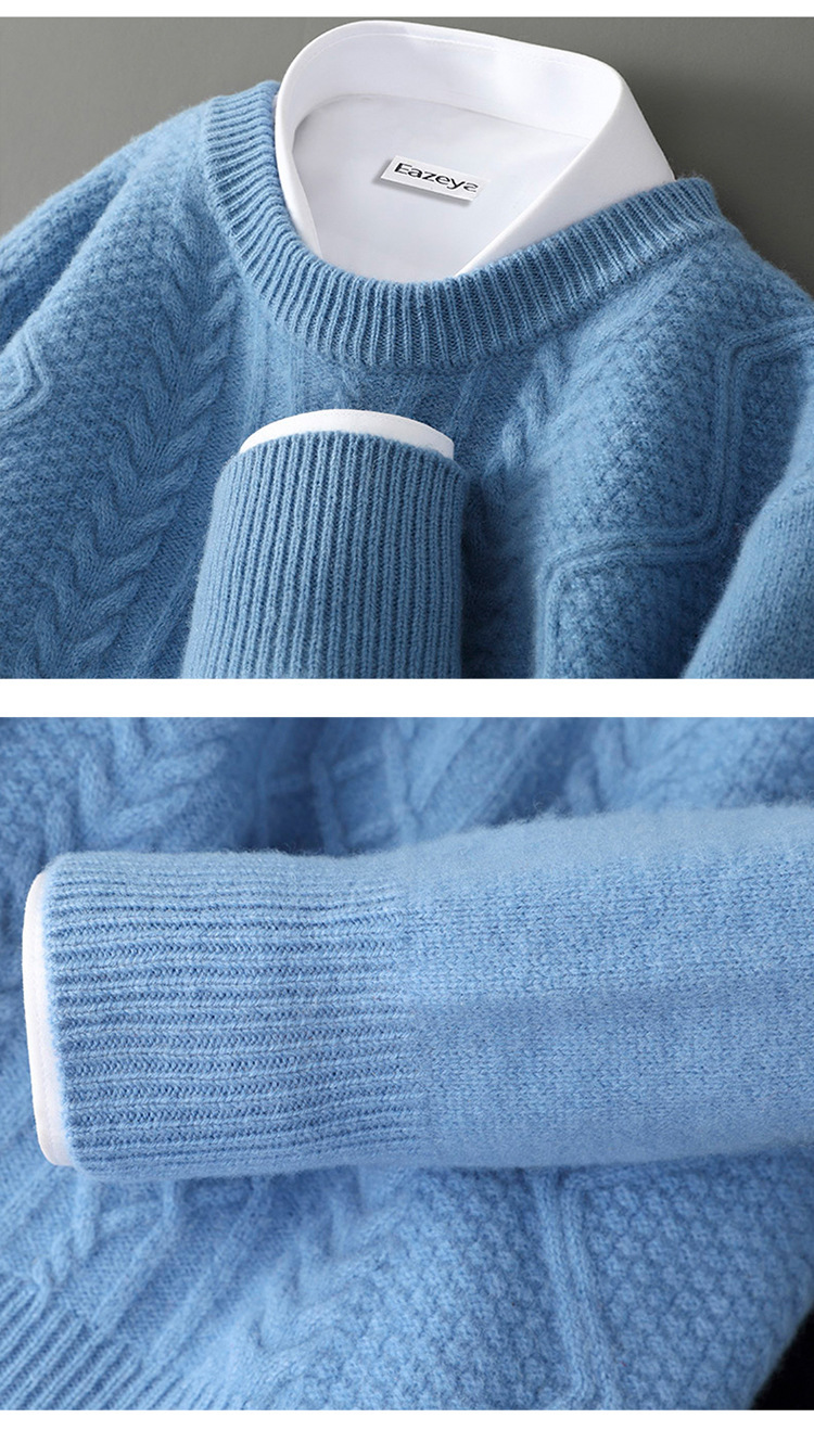 가을과 겨울 새로운 더블 두꺼운 울 스웨터 남자 라운드 넥 루즈 캐주얼 자카드 스웨터 캐시미어 니트 베이스 셔츠