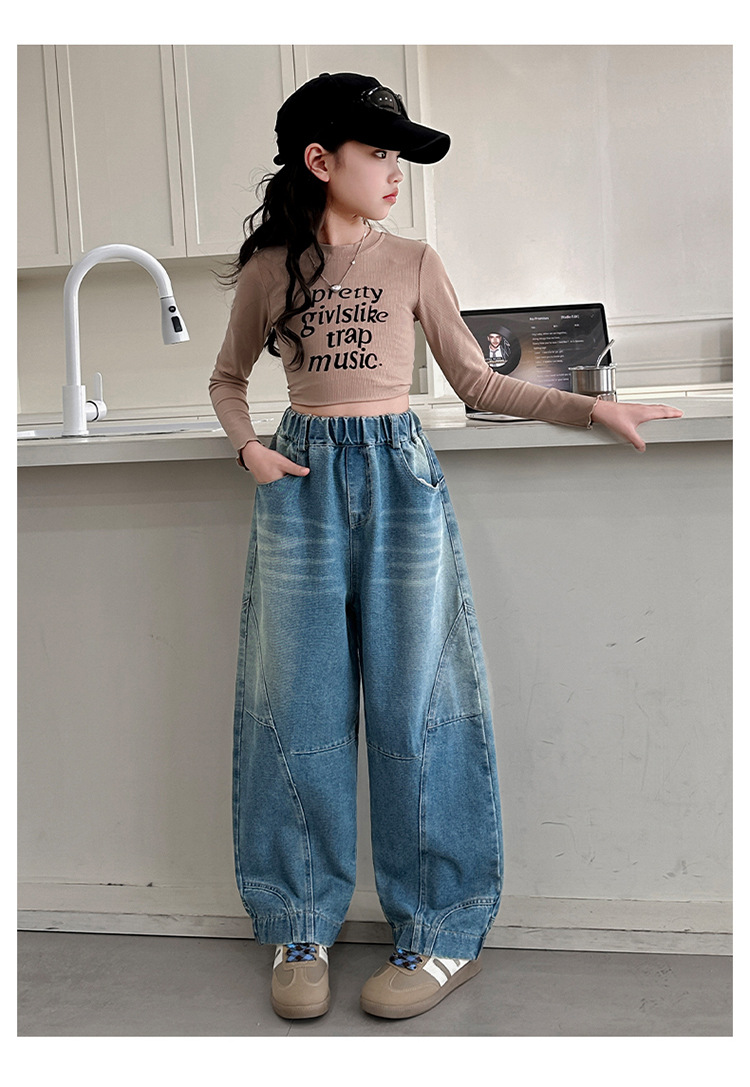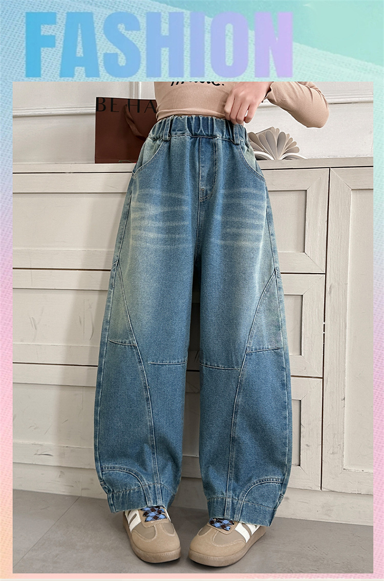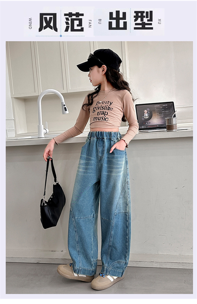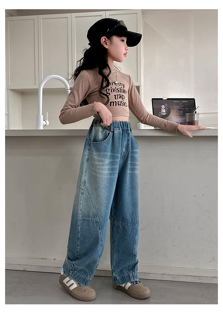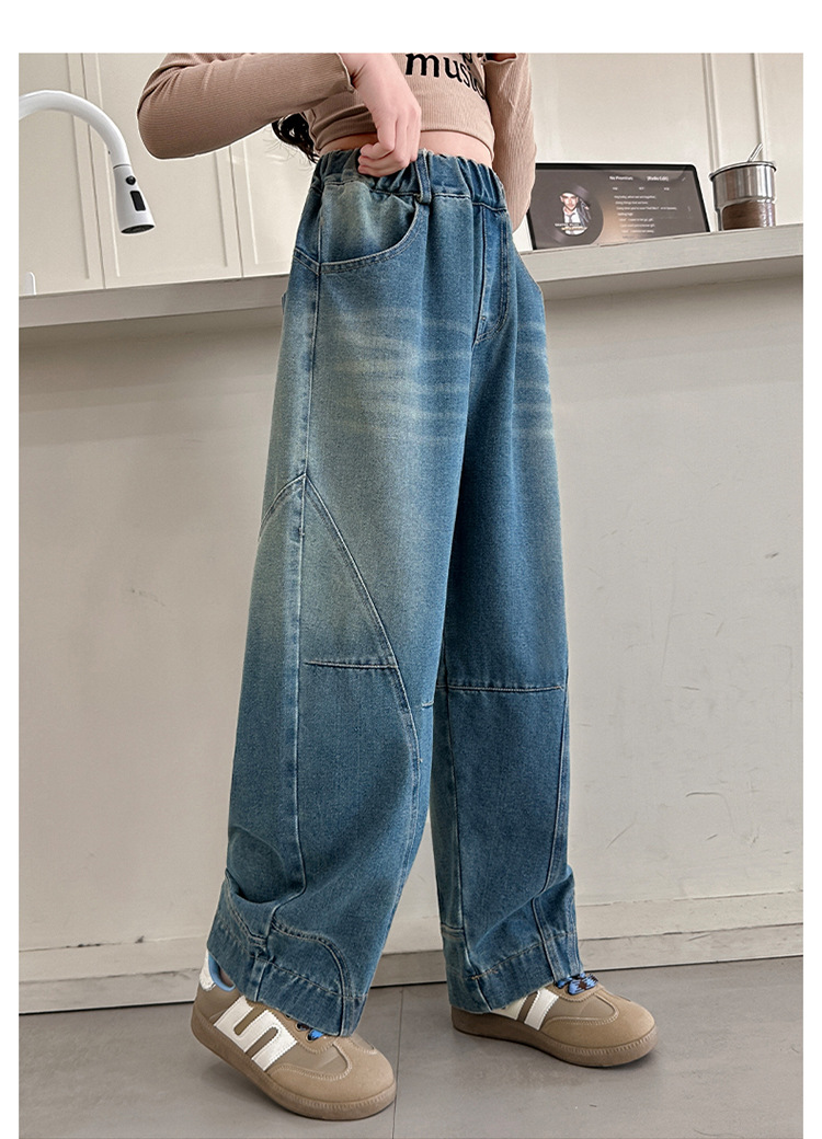 소녀 청바지 봄과 가을 얇은 2025 새로운 어린이 넓은 다리 Machete 바지 큰 어린이 봄 캐주얼 바지스토어 가기