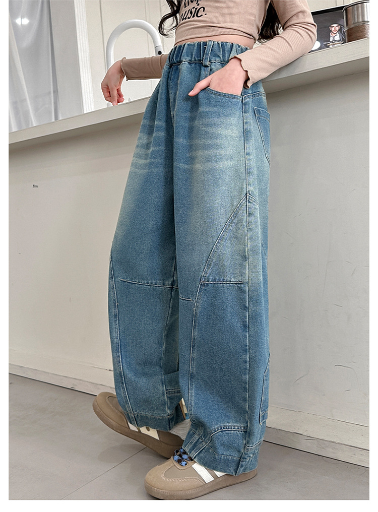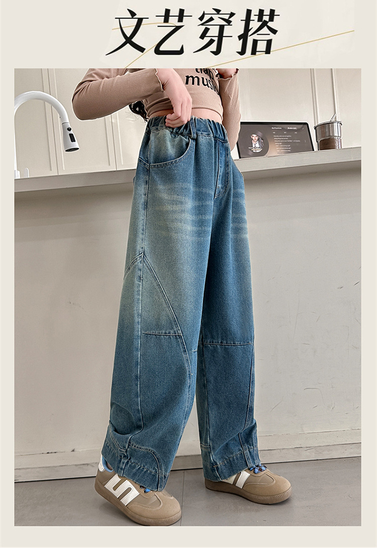 소녀 청바지 봄과 가을 얇은 2025 새로운 어린이 넓은 다리 Machete 바지 큰 어린이 봄 캐주얼 바지