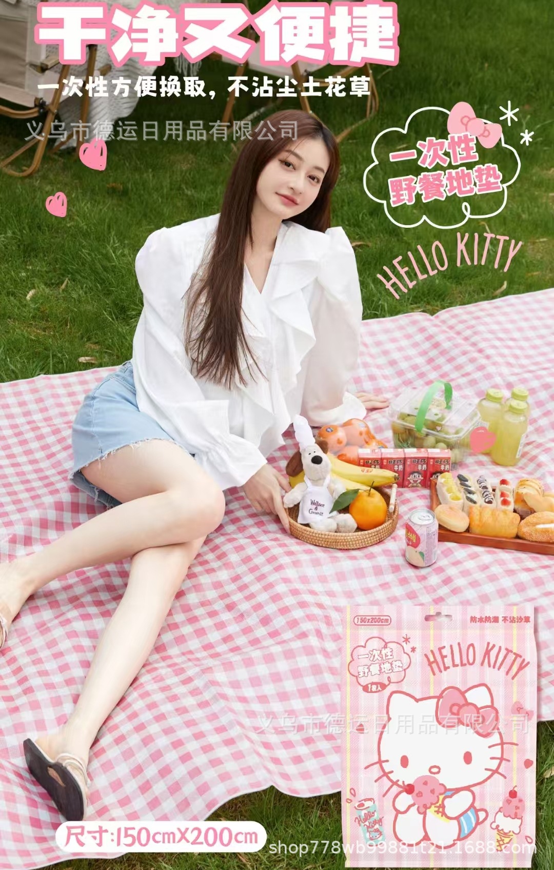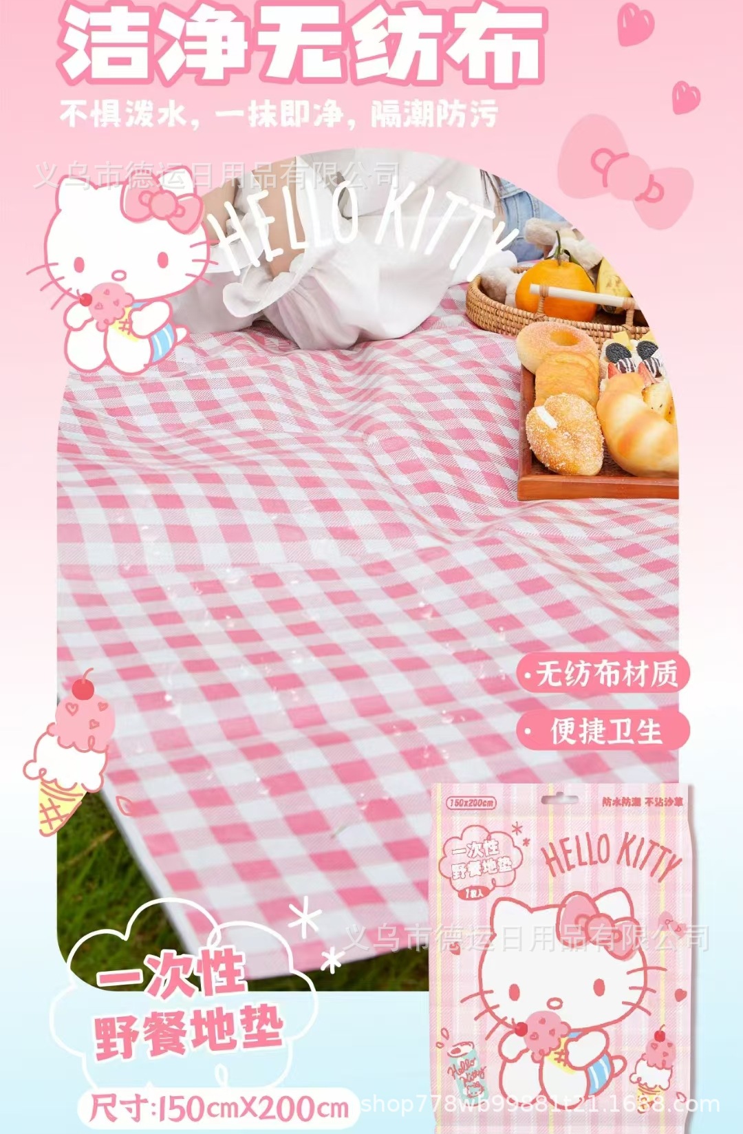 산리오 일회용 피크닉 매트 부직포 방수 방수 방수 휴대용 야외 방습 매트 편리한 저장 바닥 매트스토어 가기