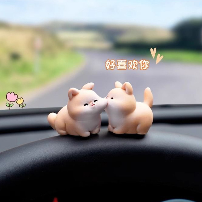 창조적 인 귀여운 얼굴 작은 동물 자동차 장식품 전기 자동차 인테리어 장식품 고양이 콘솔 장식 용품