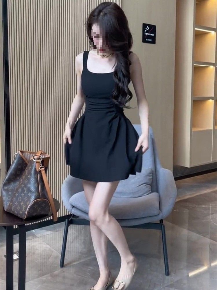 여름 프랑스 기질 원피스 작은 검은 색 원피스 여성의 순수한 허리 A 자형 서스펜더 원피스스토어 가기