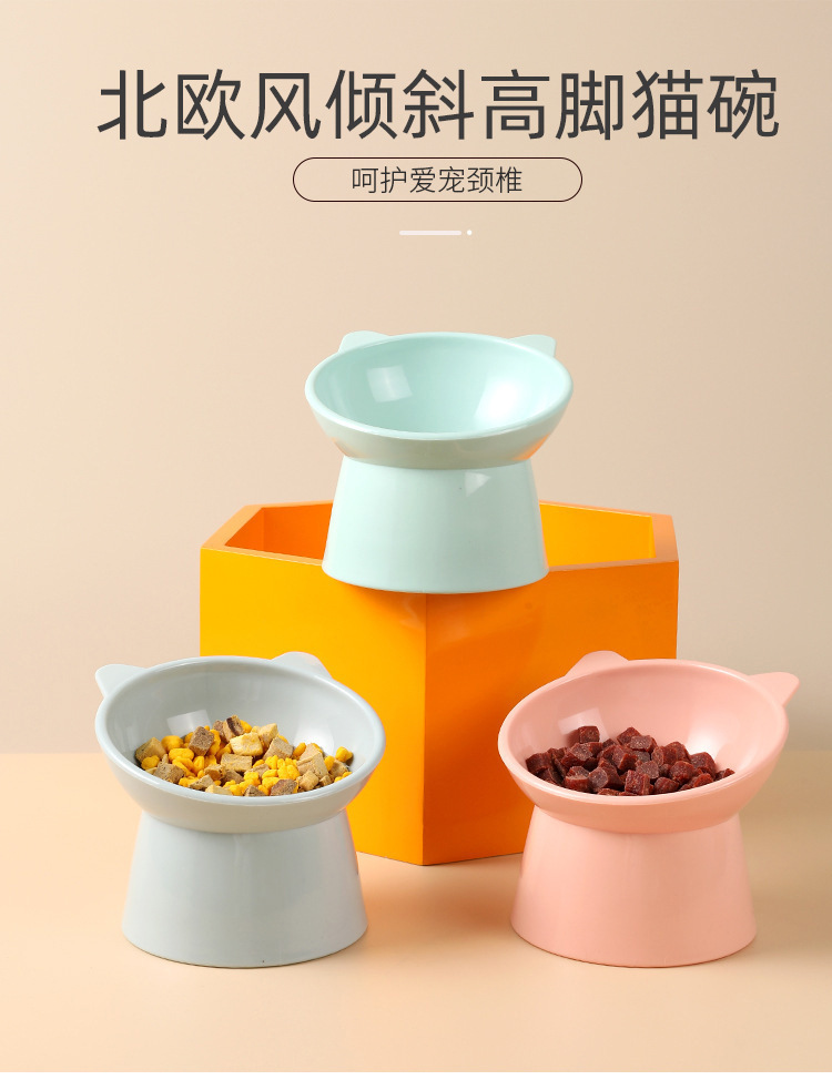 공장 애완 동물 키 큰 그릇 고양이 비스듬한 목 보호 단일 그릇 고양이 마시는 그릇 미끄럼 방지 노크 개 밥 그릇스토어 가기