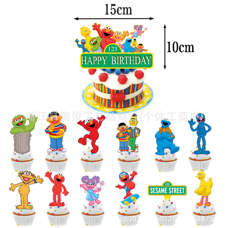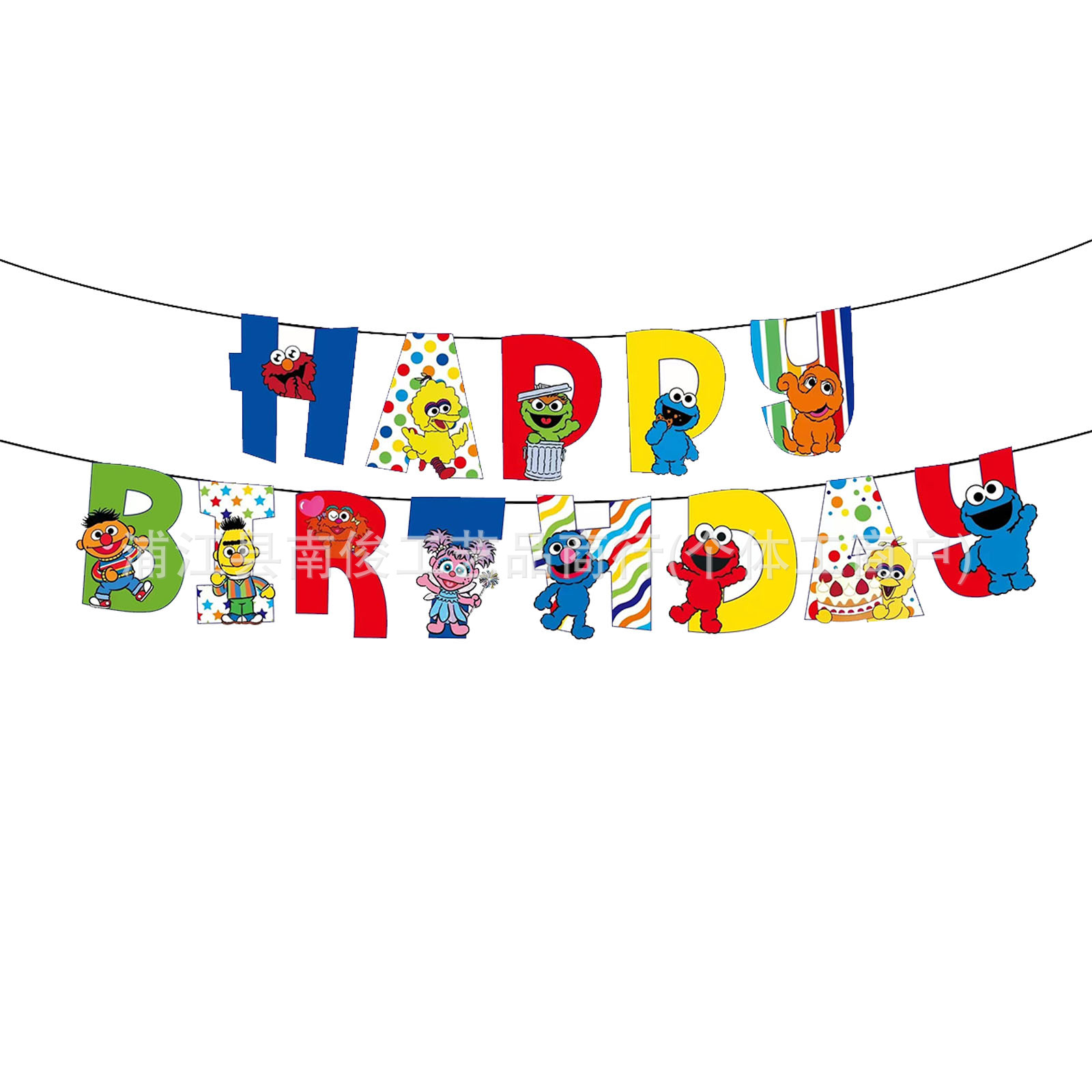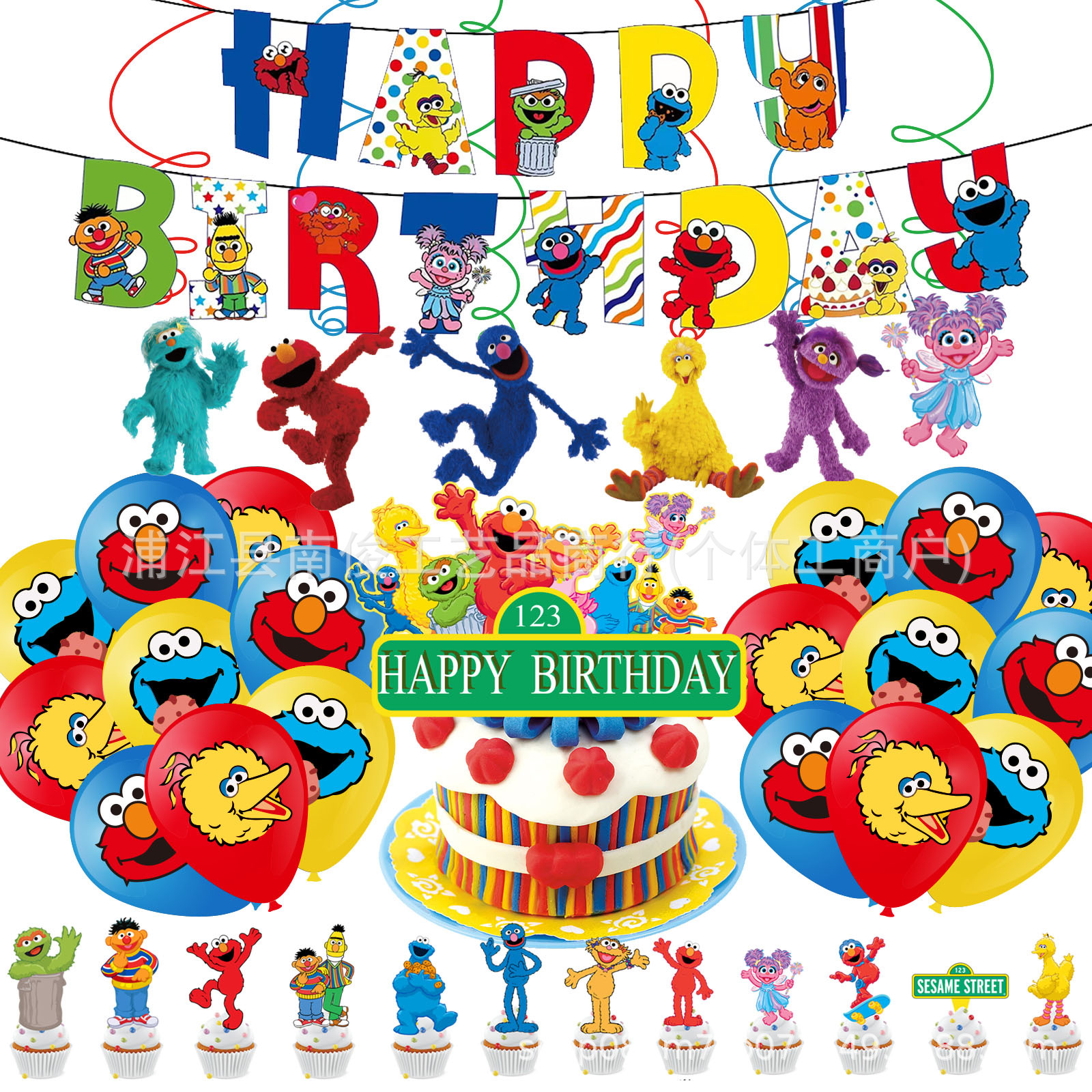 새로운 참깨 거리 테마 어린이 생일 파티 장식 라텍스 풍선 편지 깃발 케이크 세트스토어 가기
