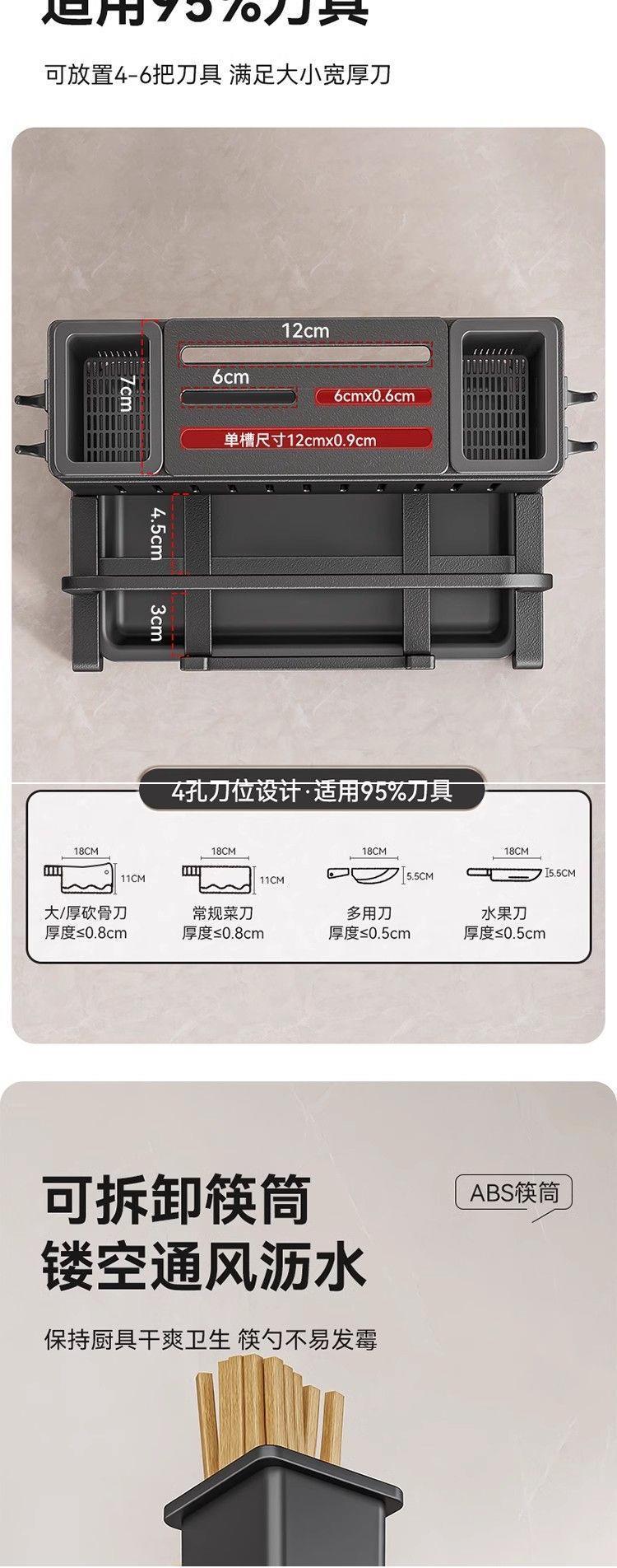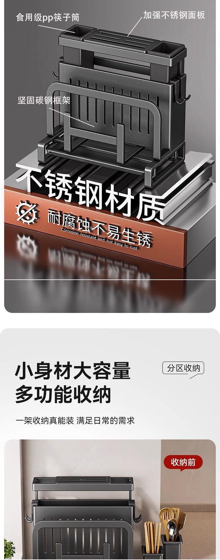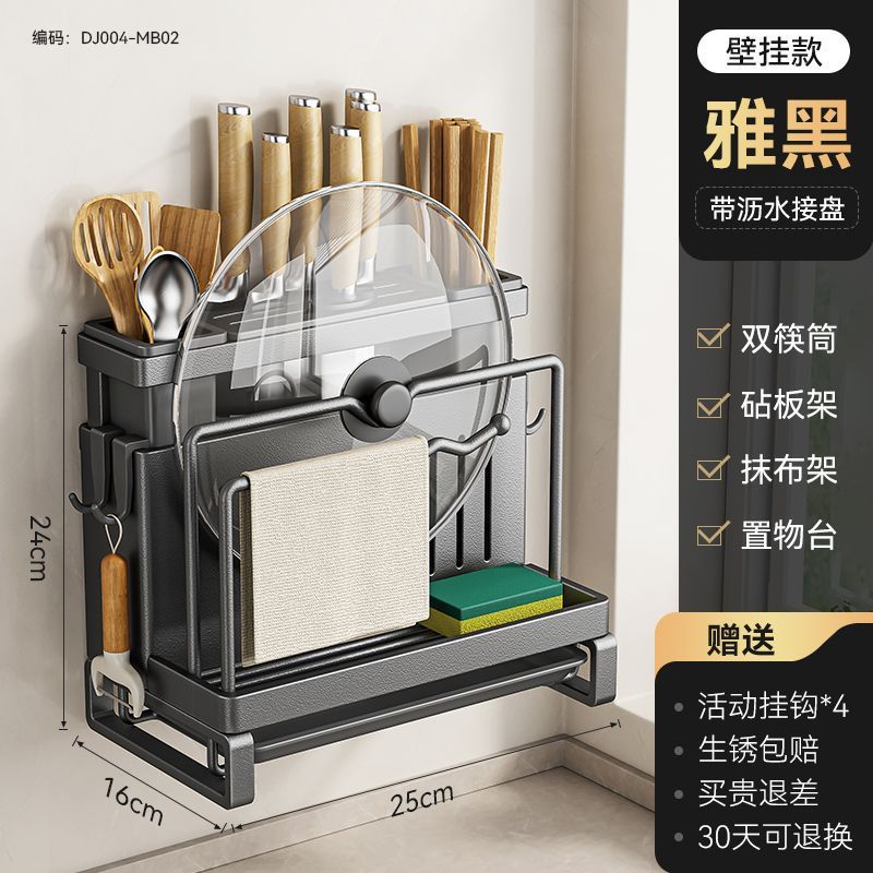 • 블랙 모델 [공식 정품 수출 품질] 두꺼워짐 - [벽걸이 모델] 이중 젓가락 꽂이 + 도마 꽂이 + 냄비 뚜껑 꽂이