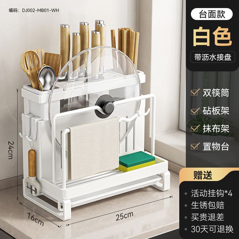 • 화이트 모델 [공식 정품 수출 품질] 두꺼워짐 - [조리대 모델] 이중 젓가락 꽂이 + 도마 꽂이 + 수납 테이블 + 걸레 꽂이