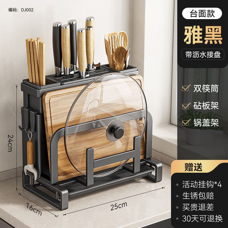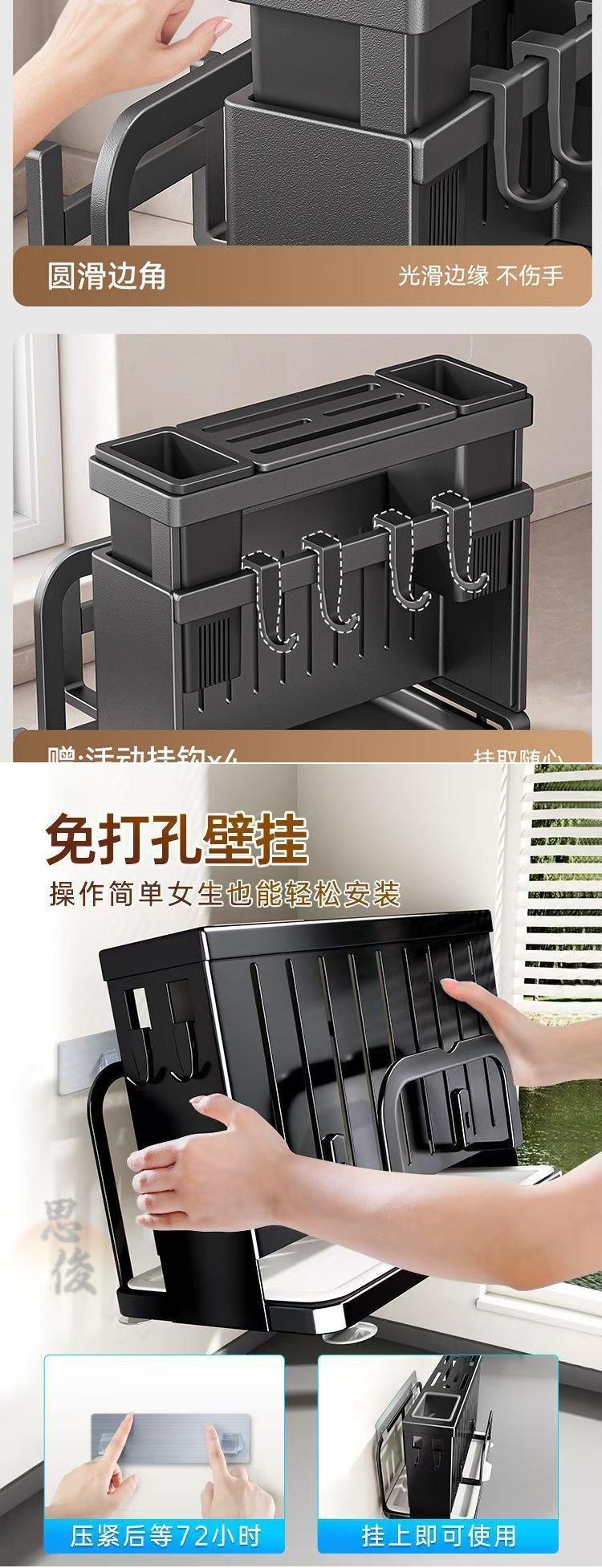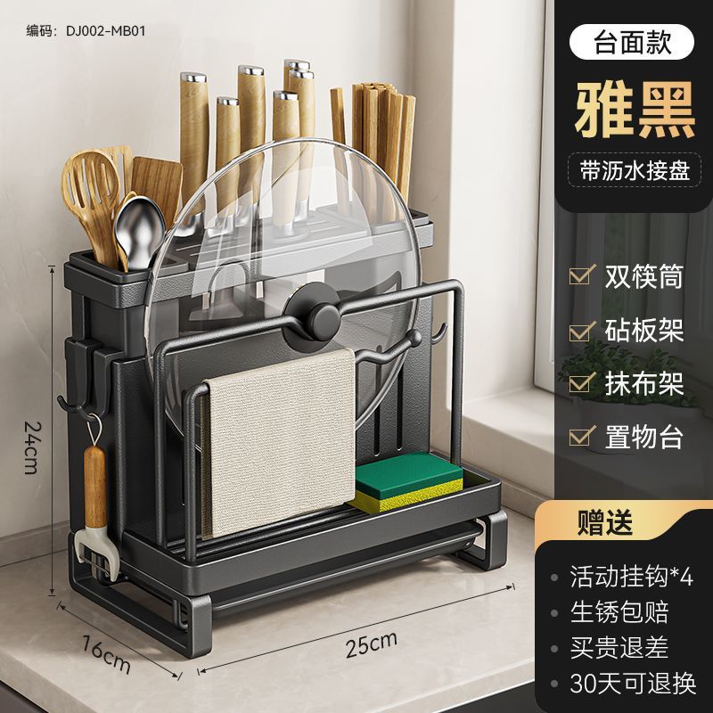 • 블랙 모델 [공식 정품 수출 품질] 두꺼워짐 - [조리대 모델] 이중 젓가락 꽂이 + 도마 꽂이 + 수납 테이블 + 걸레 꽂이