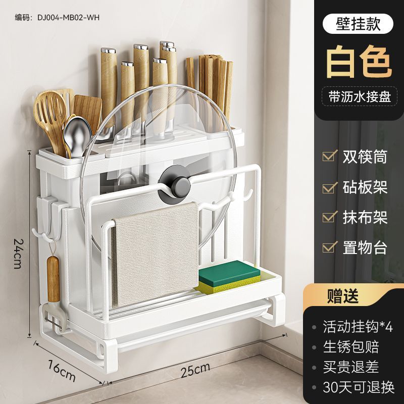 • 화이트 모델 [공식 정품 수출 품질] 두꺼워짐 - [벽걸이 모델] 이중 젓가락 꽂이 + 도마 꽂이 + 냄비 뚜껑 꽂이