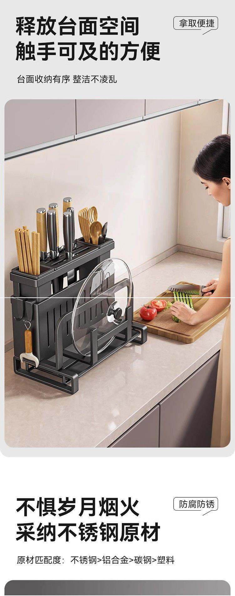• 블랙 모델 [공식 정품 수출 품질] 두꺼워짐 - [조리대 모델] 이중 젓가락 꽂이 + 도마 꽂이 + 냄비 뚜껑 꽂이