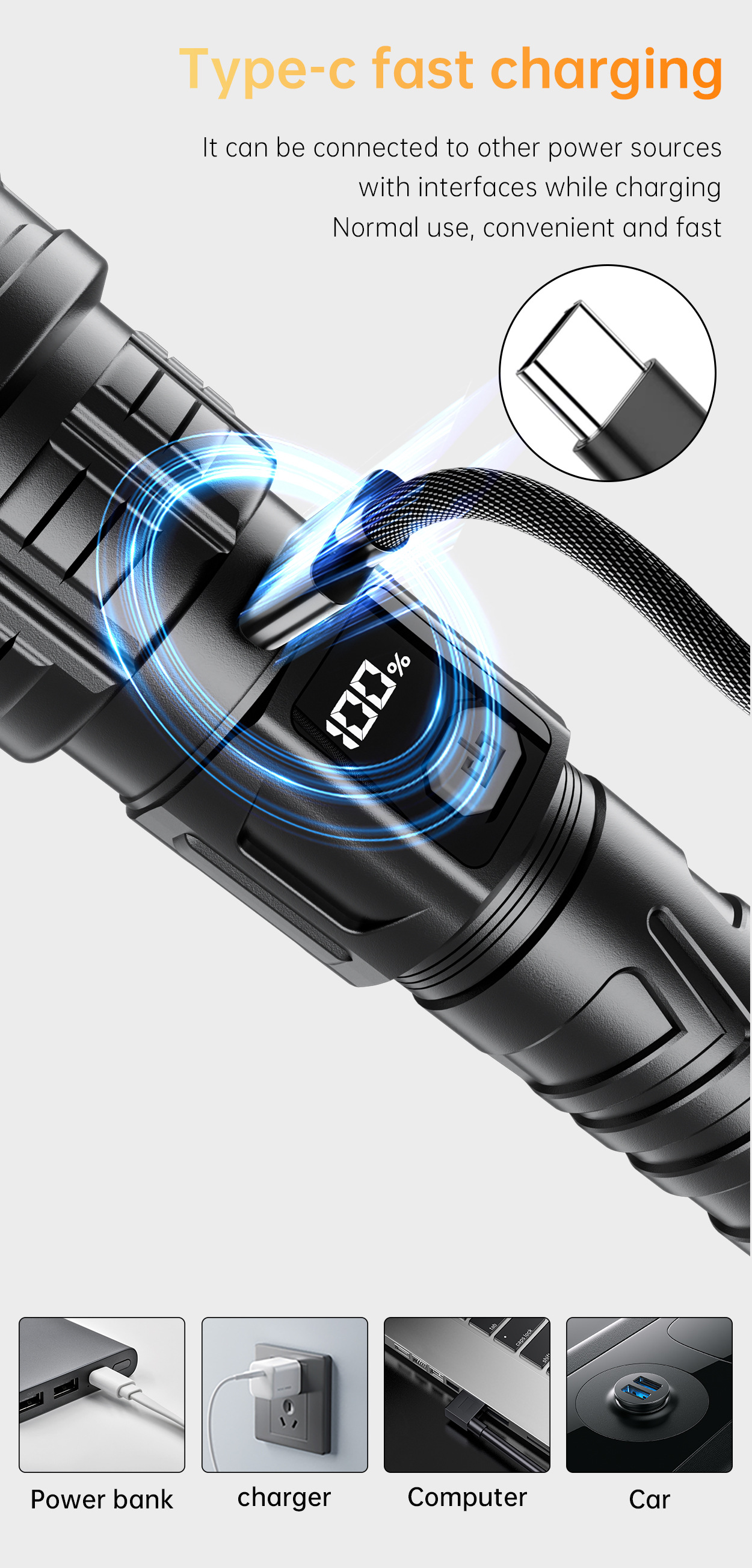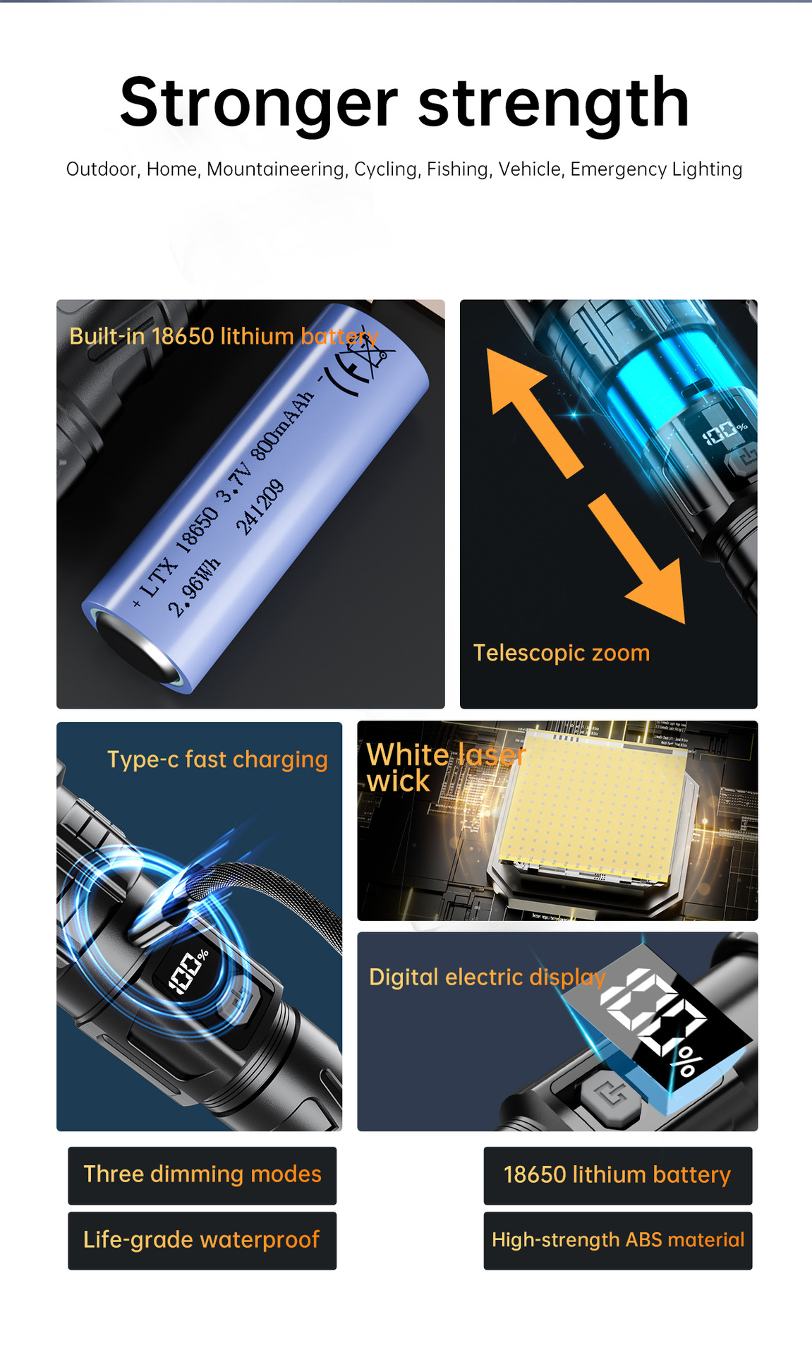 새로운 긴 내구성 강한 빛 슈퍼 밝은 줌 장거리 야외 작은 방수 휴대용 작업 가정용 손 손전등