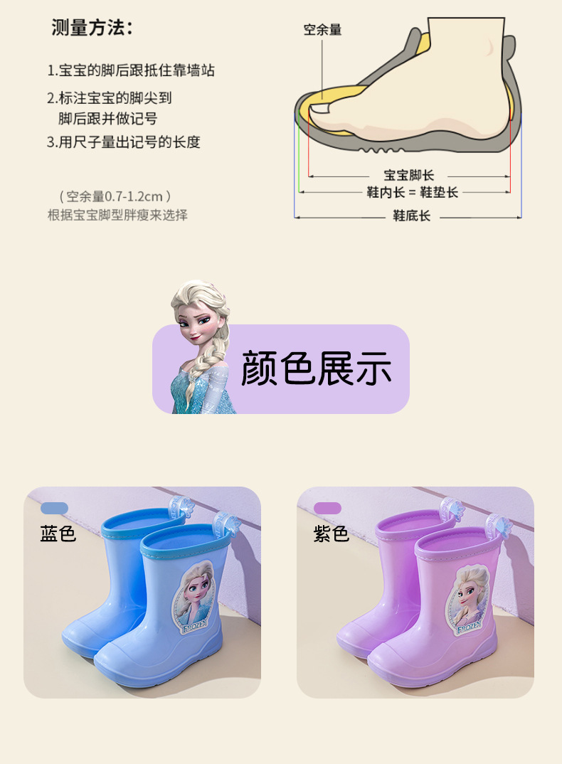 디즈니 냉동 어린이 비 부츠 소녀 사계절 워터 부츠 공주 엘사 귀여운 만화 유치원 아기스토어 가기