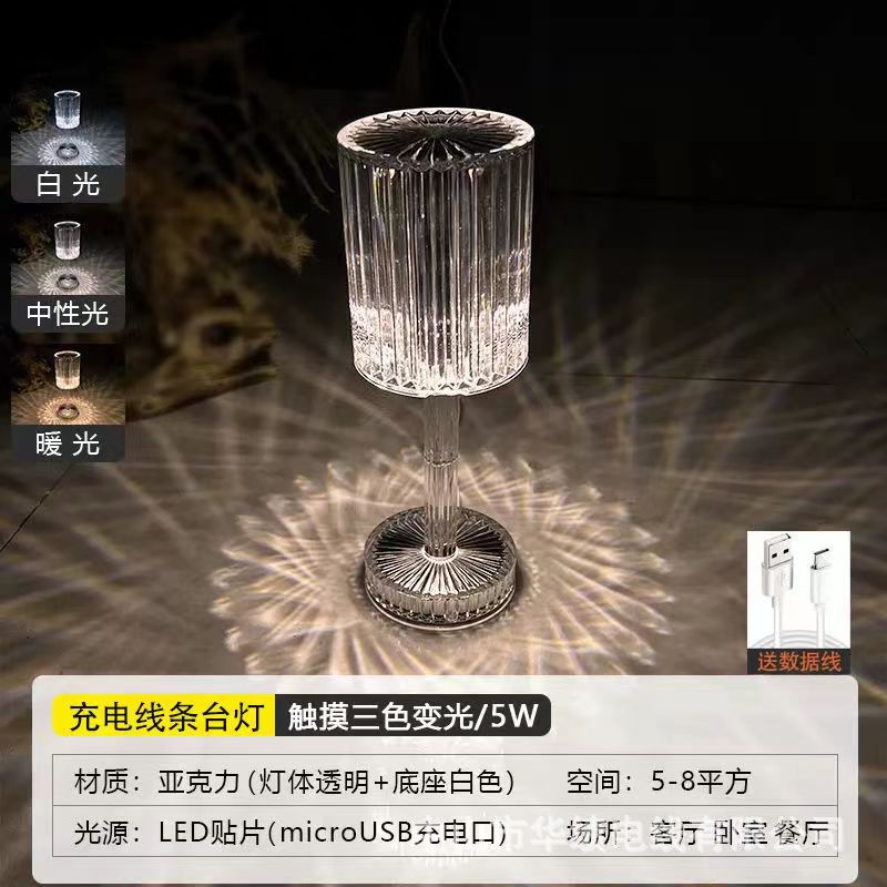 국경을 넘는 거래를 지원하며, 제조업체에서 직접 판매합니다 - 크리스탈 테이블 램프, 라인과 빛의 창의적인 터치 장식 LED 다이아몬드 테이블 램프