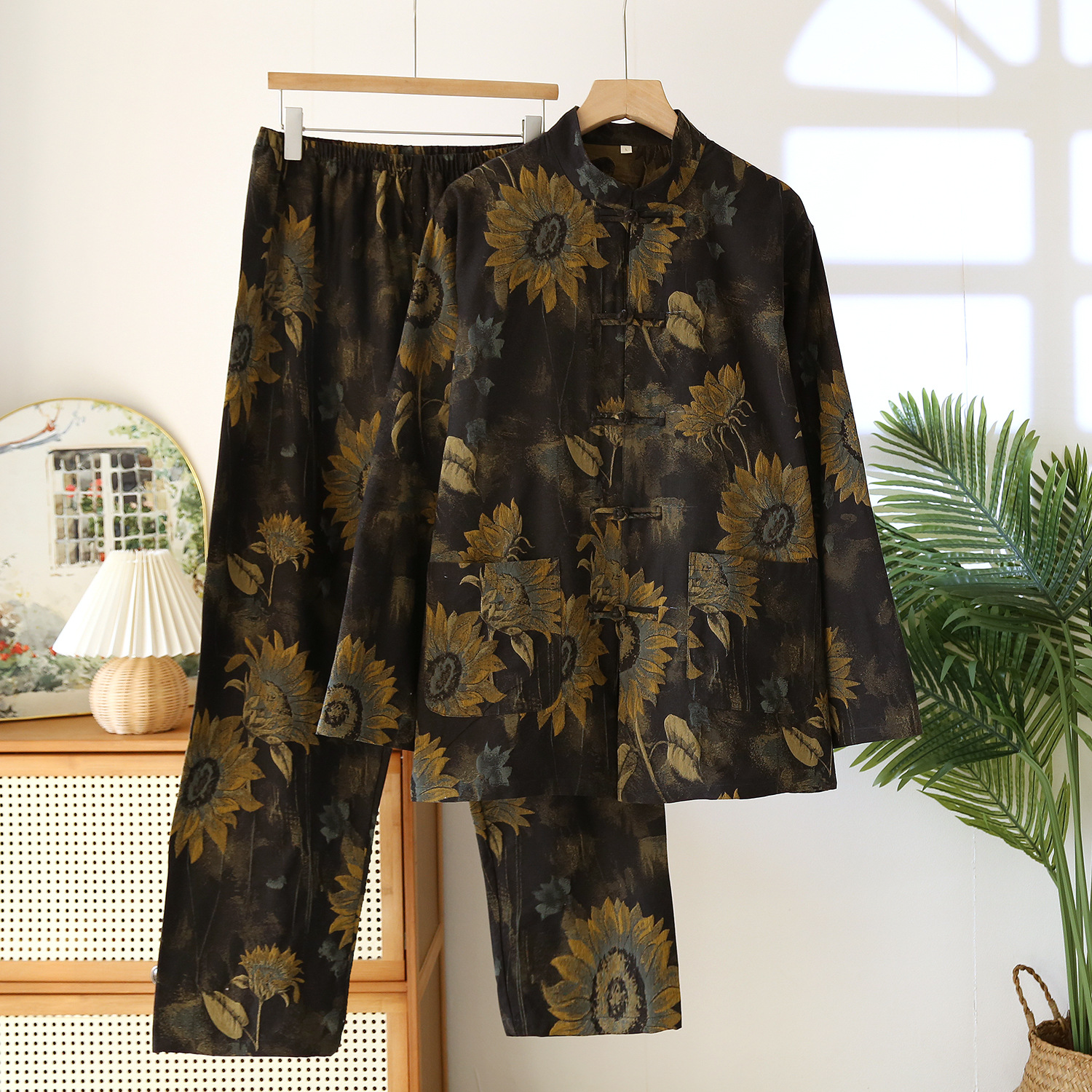 • 01 선염 남성용 롱 세트 스탠드 칼라 내셔널 스타일 자카드 실크-해바라기