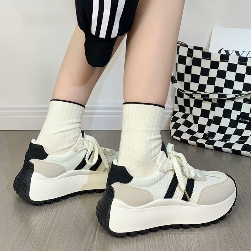 여성 신발 2025 봄과 여름 새로운 도착 유행 올 매치 토레 신발 두꺼운 단독 증가 간단한 사이버 연예인 소프트 단독 경량 운동화스토어 가기