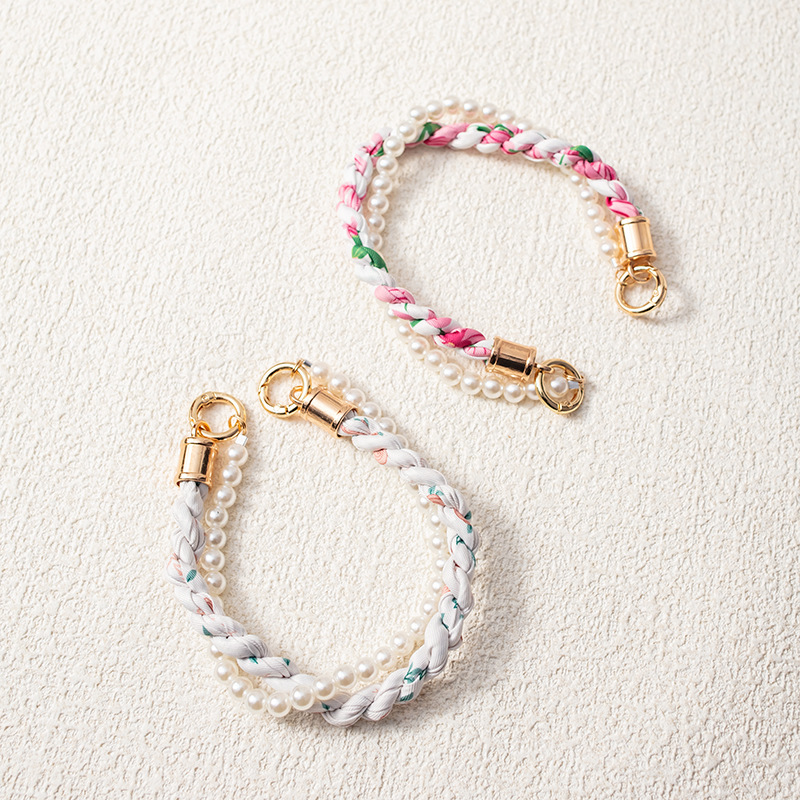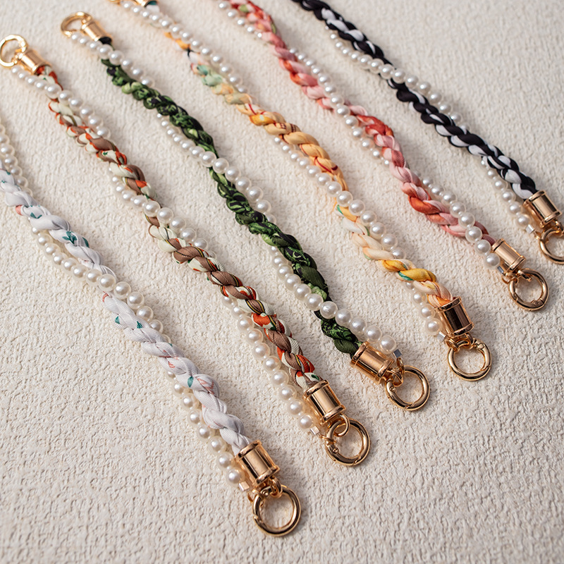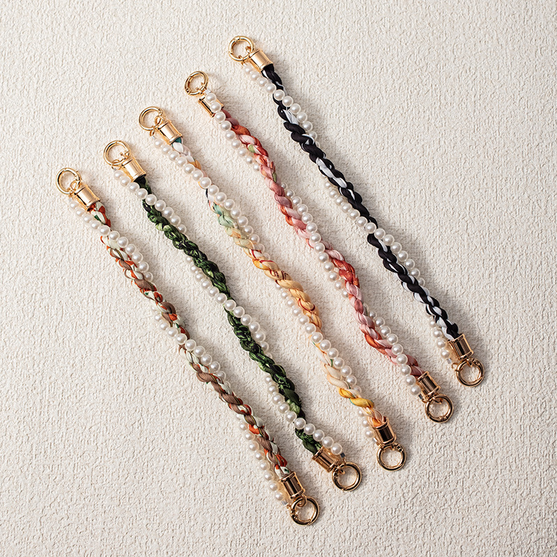 • 실크 스카프 브레이드 + 진주 쇼트 핸드 체인