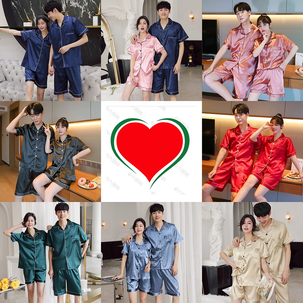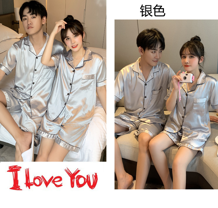 대외 무역 포장 플러스 사이즈 지방 코드 아이스 실크 커플 잠옷 여름 반팔 얇은 고급 홈 옷 실크 같은 세트스토어 가기