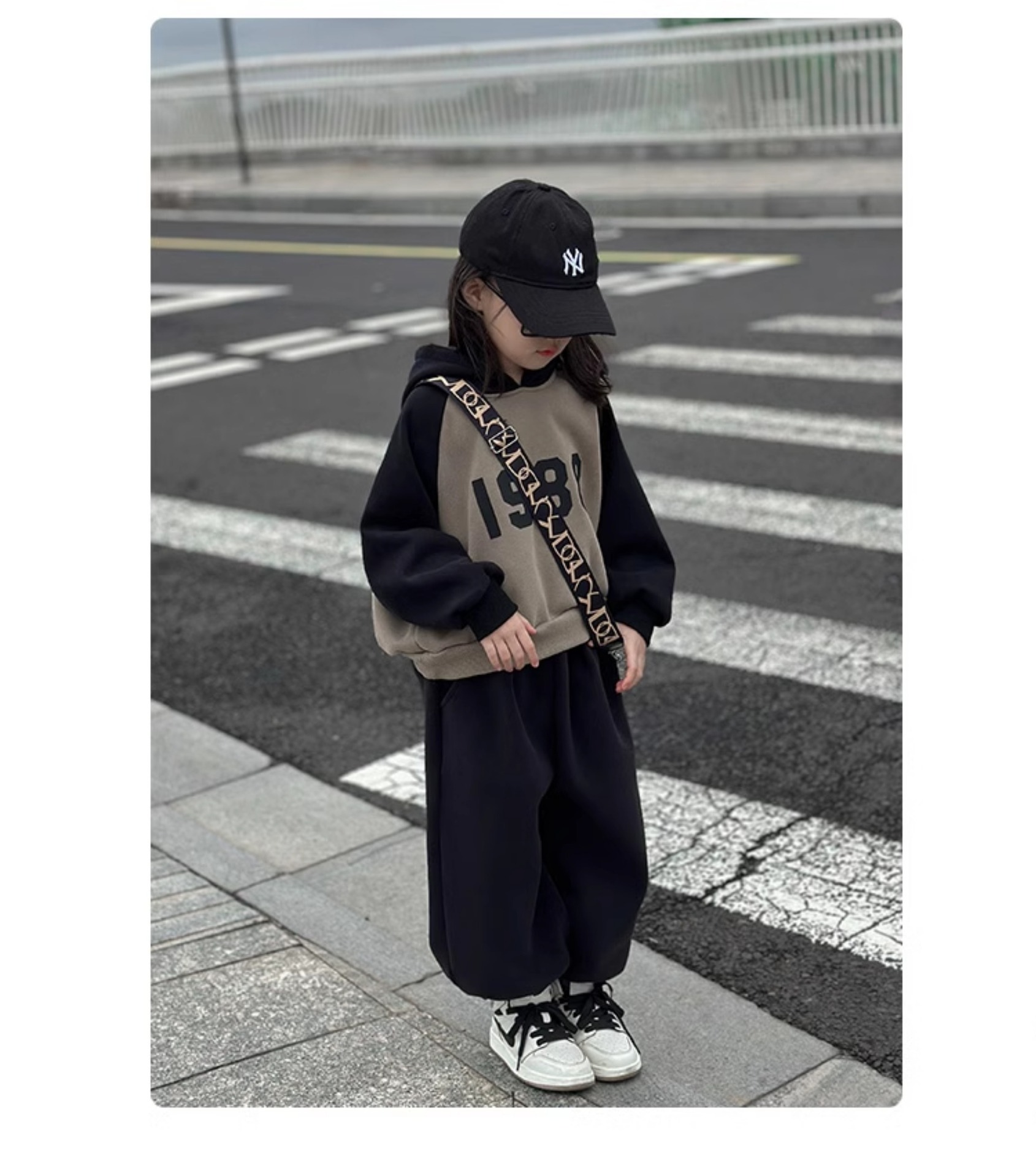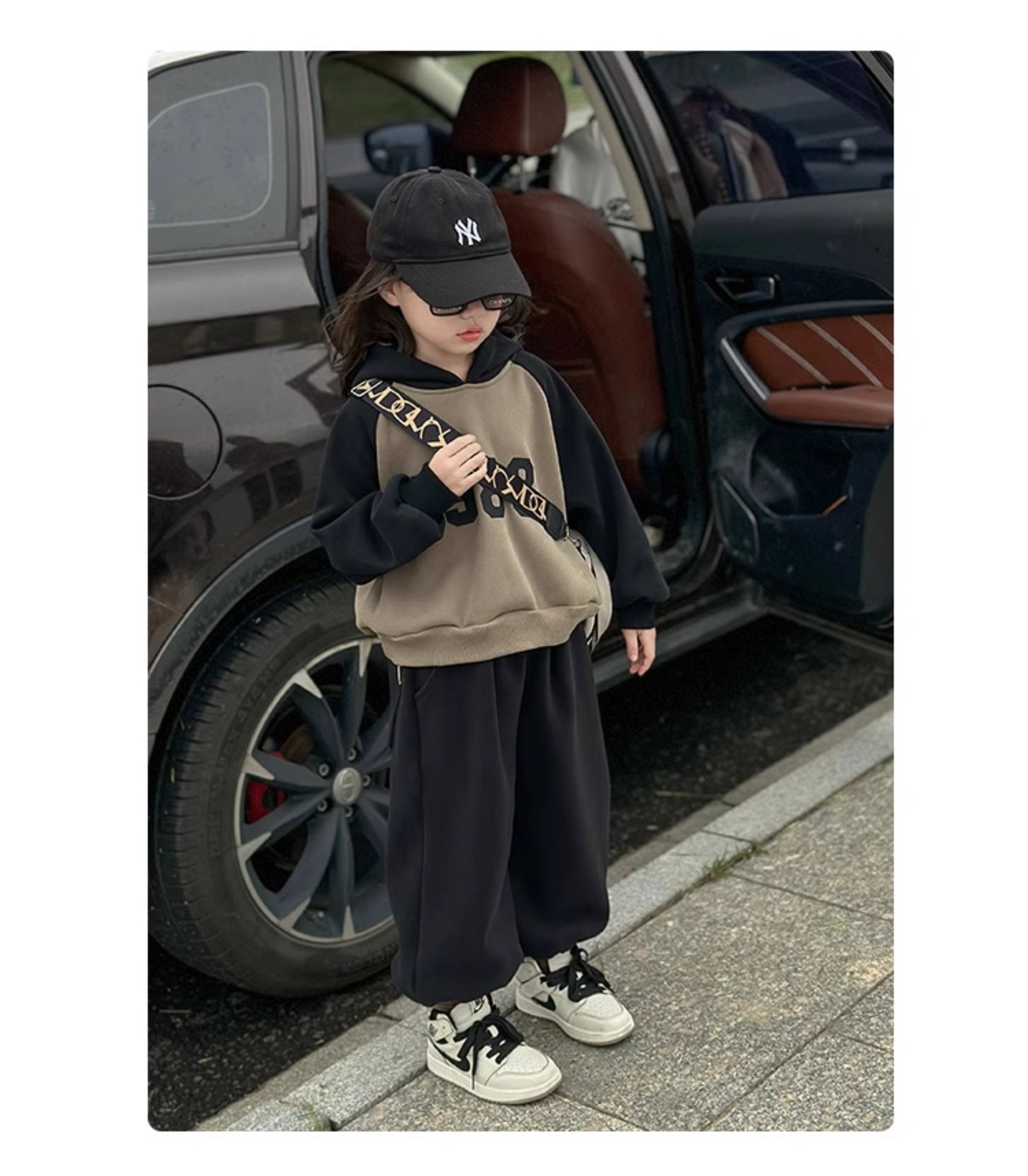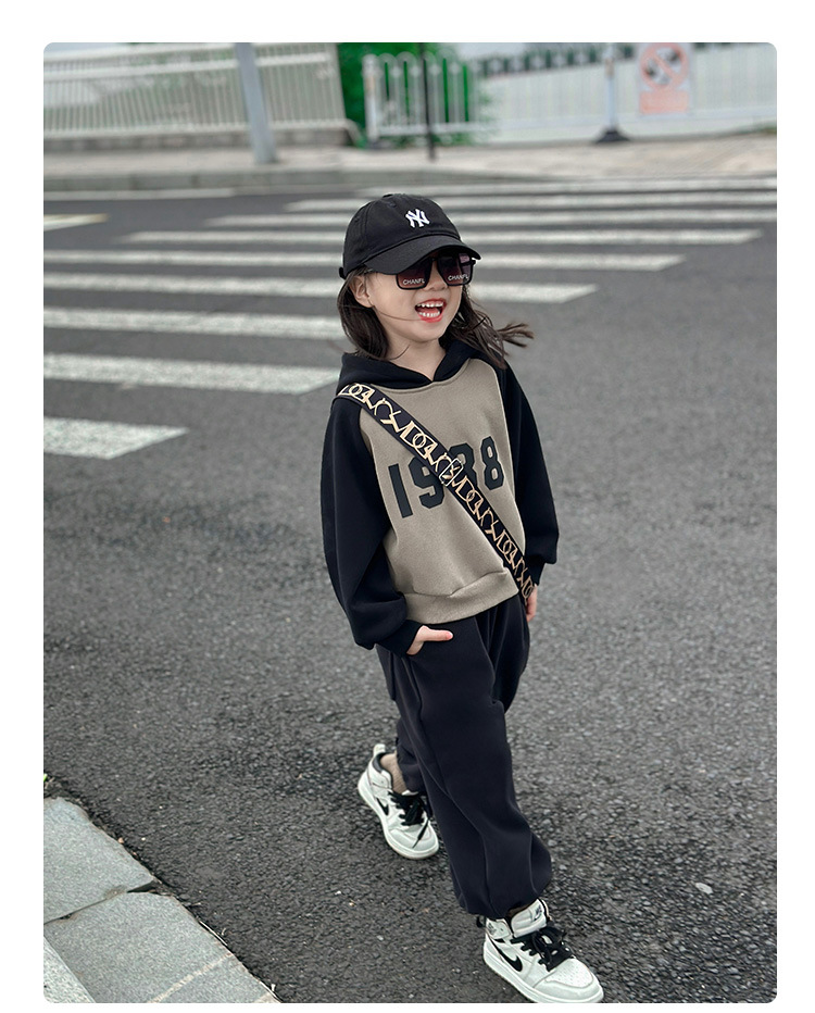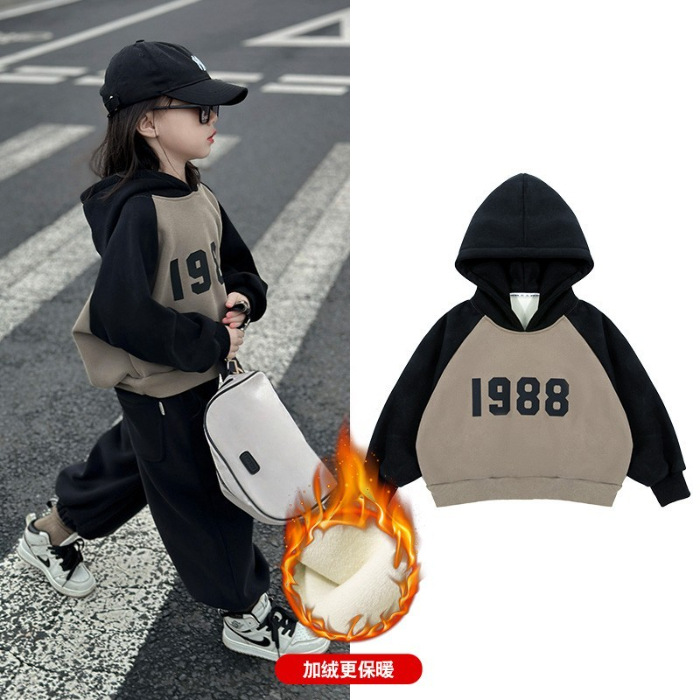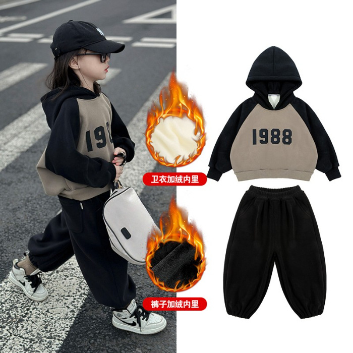 [원피스 벨벳] 컬러 매칭 두꺼운 어린이 세트 새 소녀 겨울 후드 스웨터 투피스 소년 겨울 스타일