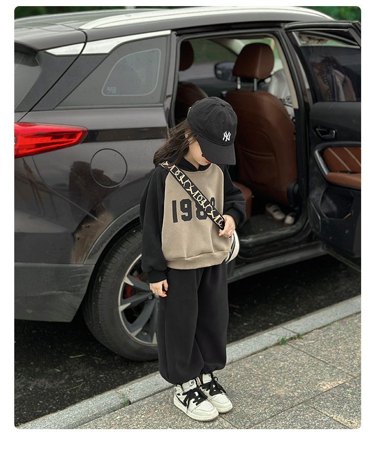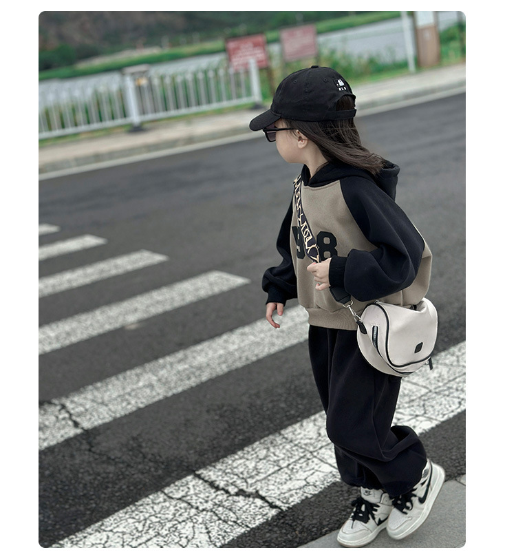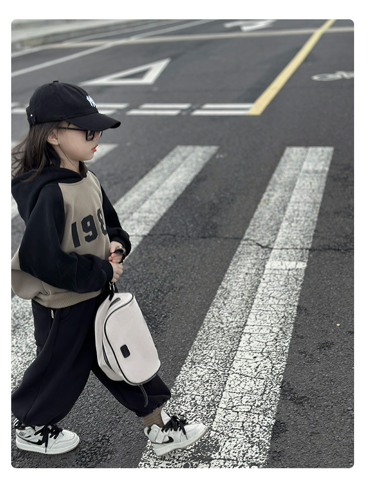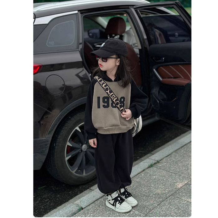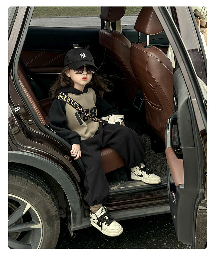 [원피스 벨벳] 컬러 매칭 두꺼운 어린이 세트 새 소녀 겨울 후드 스웨터 투피스 소년 겨울 스타일