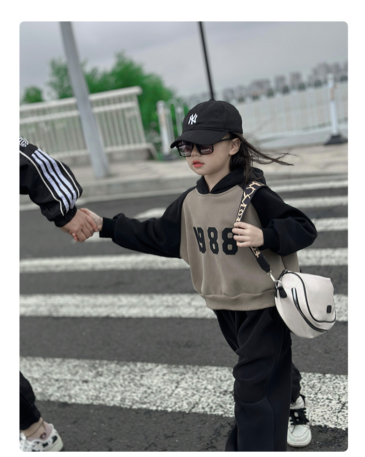[원피스 벨벳] 컬러 매칭 두꺼운 어린이 세트 새 소녀 겨울 후드 스웨터 투피스 소년 겨울 스타일스토어 가기